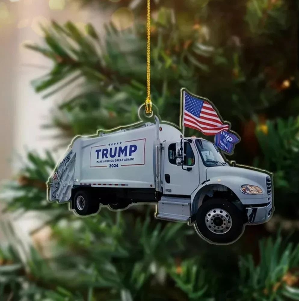 Trump Make America Great Again 2024 Garbage Truck Ornament, Trump Gift For Lover Best Material: The acrylic one is made from acrylic plexiglass, nontoxic, odor-free, exquisite craftsmanship & stylish design. Perfect Quality and Durability: Printed in ONE SIDE or TWO SIDES. The artwork of acrylic ornament is made from transparent acrylic. Wood ornament is covered with high-quality and vivid color printing. Home decoration: You can hang it on your rearview mirror as a car decoration, auto decoration, vehicle accessory, automobile accessory, or display it as home decoration wherever you like. This handy ornament is the perfect size to display in your vehicle, on your bag, or in your living room, bedroom, or workroom. Come with a hole and tinsel wire attached to the strap. Gift of love: A perfect idea if you are finding a birthday gift, a housewarming gift, a festival gift, a Mother’s Day/ Father’s Day/ Christmas gift for your family or friends. SPECIFICATION Processing Time: 3 working days average after payment and all designs updated correctly Shipping Time: 3 - 5 working days average (US) Packaging: 1x Ornament PRODUCTION Tracking Country Origin is US NOTE Actual color may be slightly different from the image due to different monitor and light effects. Please allow 0.5-2 cm differences due to manual measurement.