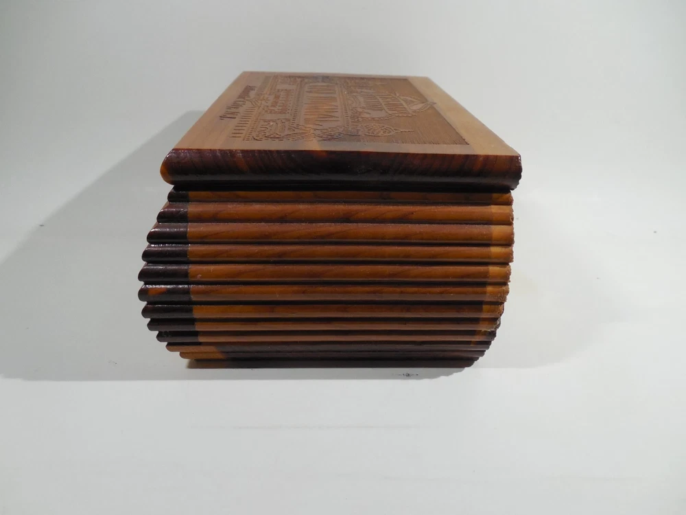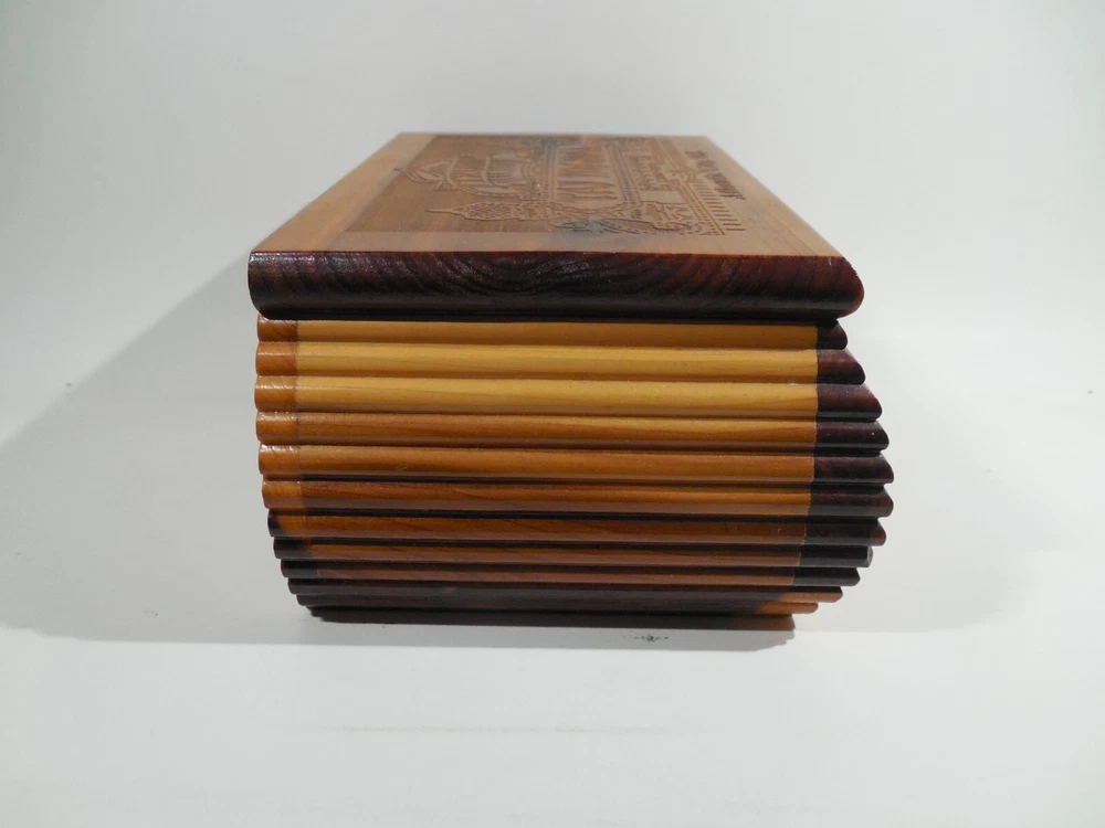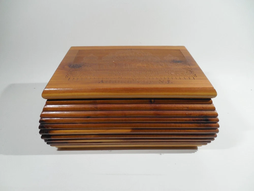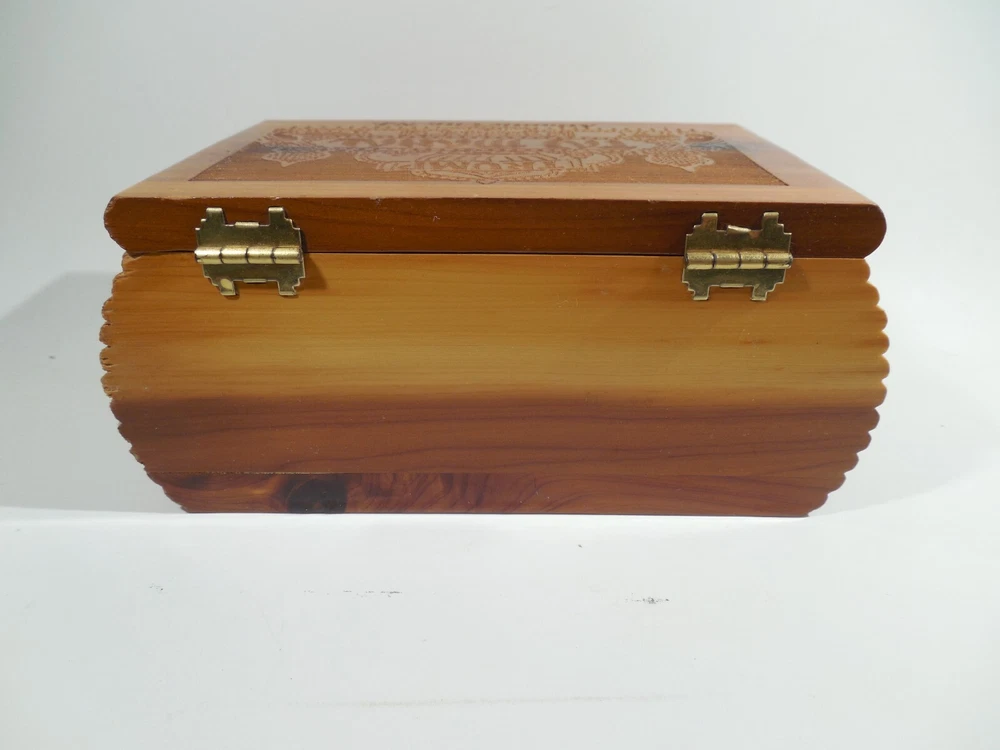 This cedar miniature hope chest was from the gift shop in the Trump Taj Mahal casino in atlantic city new jersey. bought in the 90's and in great condition!