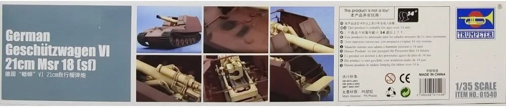 Further Details Title: Trumpeter 1/35 German Geschutzwagen VI Tiger Grille 21/210mm Mortar 18/1/L/31 Condition: New Description: PRODUCT DESCRIPTION In 1942 Krupp started the development of a heavy SP gun-carrier for the 17cm Kanone or 21cm Morser by using Tiger automotive components such as engine, transmission, steel road wheels, and tracks. The complete weight with an eight-man crew was about 60 tons, while the armor thickness was 30mm at the front and 16mm on the sides. This plastic model kit is an accurate representation of the military vehicle. FROM THE MANUFACTURER In 1942 Krupp started the development of a heavy SP gun-carrier for the 17cm Kanone or 21cm Morser by using Tiger automotive components such as engine, transmission, steel road wheels, and tracks. The complete weight with an eight-man crew was about 60 tons, while the armor thickness was 30mm at the front and 16mm on the sides. This plastic model kit is an accurate representation of the military vehicle. Brand: Stevens International Item Weight: 0.68 Kilogramsg Color: Grille 21 Style: Modern Theme: Military Size: Large Material: Plastic Age Level: Kid Dimensions: 11.96 x 4.07 x 4 inches Number of Pieces: 1 Scale: 1/35 Character: Modern Item Length: 303mm Item Width: 103mm Item Height: 101mm Type: Military Vehicle Kits Includes hundreds of pieces Glue and paint not included Ready-to-assemble plastic model kit Photo-etched parts included Missing Information? Please contact us if any details are missing and where possible we will add the information to our listing.