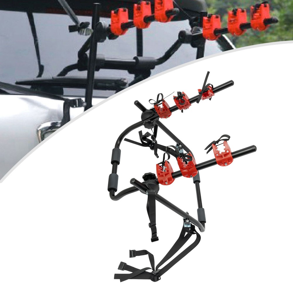Specifications: Material: Iron Round Tube Frame, ABS Plastic Connection Structure, Alloy Buckles & Iron Hooks Covered with Rubber Height: 61cm / 24'' Width: 48cm / 19'' Depth: 66cm / 26'' Long rope length: 125cm / 49'' Short rope length: 93cm / 36.6'' Load Capacity: 20kg (44.09 pounds) Holding Bikes: 3 Bikes G.W.: 4.35 Kg/9.6 Lbs Color: Black and red Package included: 1 x Bicycle Rack 1 x Instruction 1 set Accessories Bike Rack For Car Trunk Mount 3 Bicycle Carrier Sedan Hatchback SUV Minivan New Description Note:Maximum load 40KG-three bikes(2 Adults bikes and 1 childs bike) 3-Bike Trunk Mount Rack Bicycle Carrier Hatchback for Car Rack Foldable Specifications: Color: Black and Red Holding Bikes: 3 Bikes Material: Iron, ABS Plastic, Alloy, Rubber Height: 62cm / 24.41in Width: 48cm / 18.89in Length: 68cm / 26.77in Long Rope Length: 125cm / 49in Short Rope Length: 93cm / 36.6in Load Capacity: 20kg/ 44.09pounds Gross Weight: 4.35 kg/ 9.6 lbs Package included: 1* Trunk Mounted Bike Rack 2* Ropes 6* Safety Buckles 1* English Instruction Description: Features: 【Premium Material】 The bike rack has iron round tube frame, ABS plastic connection structure, alloy buckles and iron hooks covered with rubber. 【Load Capacity】 Bike trunk rack can hold 3 bikes, with a load capacity of 40kg/88lb, which will fit most bikes. Long rope length: 125cm / 49''; Short rope length: 93cm / 36.6''. 【Convenience】 Rubber buckles are designed for adjustment. Gutter hooks fit a wide variety of vehicle trunk hinge lines. The bike rack is foldable for easy storage. 【Best Service】 Quality Guarantee is the basic rule. We are dedicated to providing quality services, quality products and fast delivery(US WAREHOUSE). We have a professional customer service team to answer your questions within 24 hours. Any question, please contact us. Scope of application: 1. General-purpose cars (sports cars, tailless cars, modified cars, special cars, off-road vehicles, fastback cars are not suitable), customers are advised to take pictures of the car before placing an order to confirm whether it is applicable; 2. Bicycles without beams cannot be fixed, and customers’ bicycles need to have beam structures It can be installed in the back of most automobile trunk, Partially applicable SUVs , and it will be super easy to install. Bike trunk rack with load capacity of 40kg will fit most bikes . Gutter hooks fit a wide variety of vehicle trunk hinge lines. 100% Brand new rubber buckles for adjustment Foldable design for easy storage Will not damage your vehicle while using Note: Maximum load 40KG -three bikes(2 Adults bikes and 1 childs bike) Note:Maximum load 40KG-three bikes(2 Adults bikes and 1 childs bike Payment Delivery details Terms of sales About us Contact us Payment We accept ebay payment 。 Fees such as import duties, taxes are not included in the item price or shipping costs. These charges are the buyer's responsibility. Delivery details Shipping: 2-9 working days to: USA Terms of sales We maintain high standards of excellence and strive for hundred percent customer satisfaction. Feedback is very important to us. We hope that you contact us immediately before you give neutral or negative feedback, so that we can address your concerns. It is impossible to address issues if we do not know about them! About us Your satis faction is our ultimate goal. We work hard to earn your trust and future business. Our certified technicians have tested each item before shipping. The unit comes with 1 year limited warranty on all manufacturing defects. a) If you receive a defective item, you may return it or ask for a discount. Please contact us within 14 days after you receive the package. b) What you returned must be intact and in its original packaging as re? u. Customer is responsible for shipping costs of the returned item. c) We will cover the cost of shipping back t with the shipping rate indicated in the registration page. We will send you a new unit or refund the full payment you paid. Thank you. Contact us Business Hour Business Hour: Monday To Friday: 8:30 AM to 5:00 PM (Beijing China time) Due to time zones, our reply to your questions may not be immediately. But within above working time, we will reply your email within 24 hours. If it's non-workdays, please kindly be patient and wait till Monday. Please contact us with ebay message. Please feel free to contact us if you have any questions. Monday To Friday: 8:30 AM to 5:00 PM (Beijing China time) Due to time zones, our reply to your questions may not be immediately. But within above working time, we will reply your email within 24 hours. If it's non-workdays, please kindly be patient and wait till Monday. Please contact us with ebay message. Please feel free to contact us if you have any questions. On Aug 11, 2025 at 19:56:36 PDT, seller added the following information: