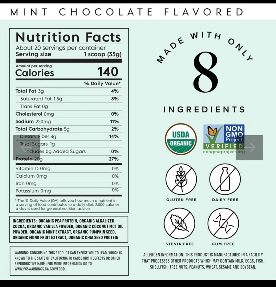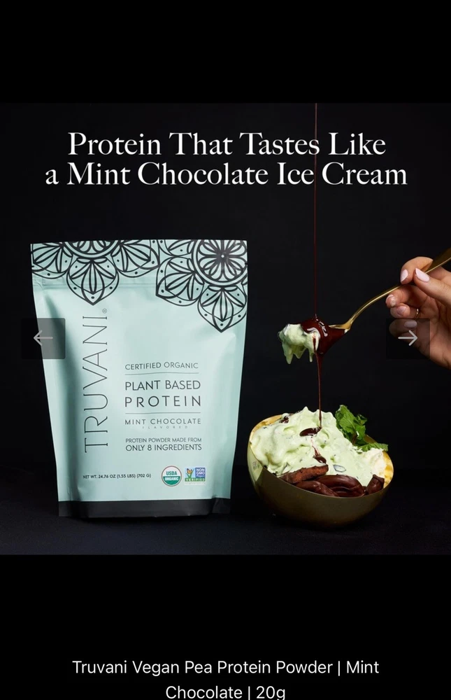 Truvani Vegan Pea Protein Powder | Mint Chocolate | 20g Organic Plant Based. Premium, Hand-Selected Ingredients: Elevate your health with Truvani plant-protein powder, crafted with premium ingredients to support a clean and vibrant lifestyle. Indulge guilt-free in a variety of decadent flavors, all made with vegan ingredients. Truvani is ideal for those with dietary restrictions or sensitivities, promoting digestive wellness. Clean Formula, Free of Additives & Fillers: Experience pure nutrition with Truvani plant-based protein powder, free from artificial sweeteners, useless additives, and weird fillers. Our formula excludes soy, wheat, dairy, gluten, and stevia, ensuring a clean and wholesome blend. Enjoy the sweetness of organic monk fruit without added sugars. Certified USDA Organic: Trust in the integrity of our plant-based vegan protein powder, certified USDA Organic, non-GMO, and vegan-friendly. Our straightforward label and simple ingredients ensure transparency and quality. Protein sourced from all organic pea, pumpkin seed, and chia seed. Delicious Vegan Protein Shake: Elevate your daily routine with a delicious protein boost from Truvani plant protein powder. Our smooth blend delivers rich flavors without a chalky or grainy texture, making every sip enjoyable. Each serving has 120-140 calories to help you hit your fitness goals.