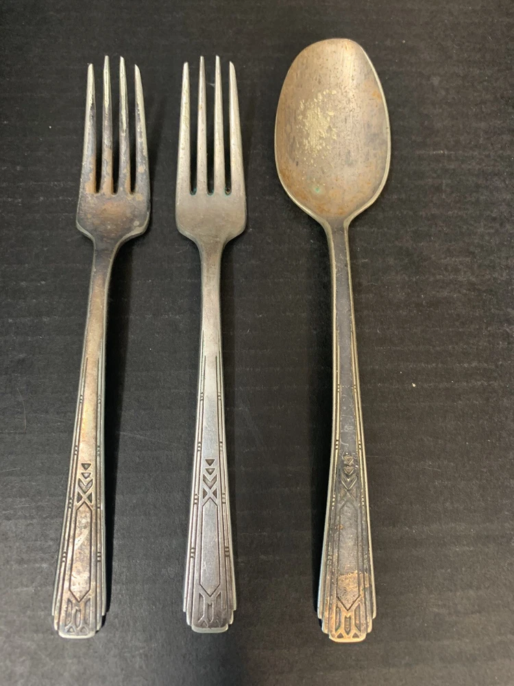 Tudor Plate Community Oneida Silver Plated 2 Forks 1 Serving Tablespoon Spoon = 8 inch, Fork = 7.25 inch Good Condition - some wear from use and tarnish - see pictures for details Please contact me with any questions