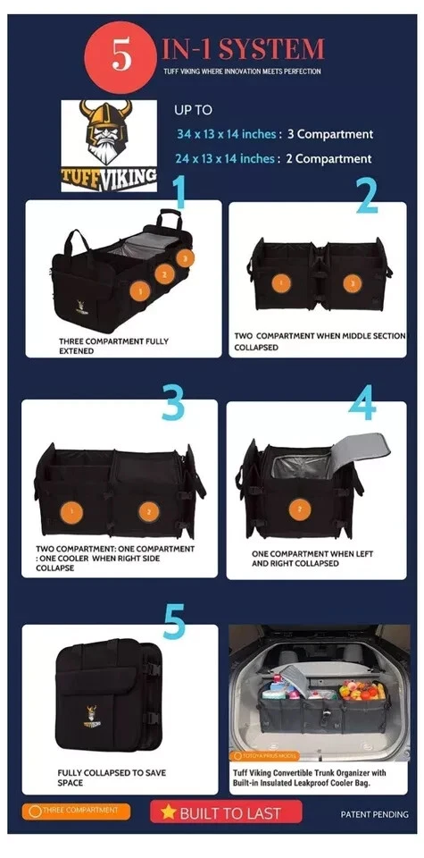 Tuff Viking SUPER HEAVY DUTY Car Trunk Organizer Storage Built to Last NEW