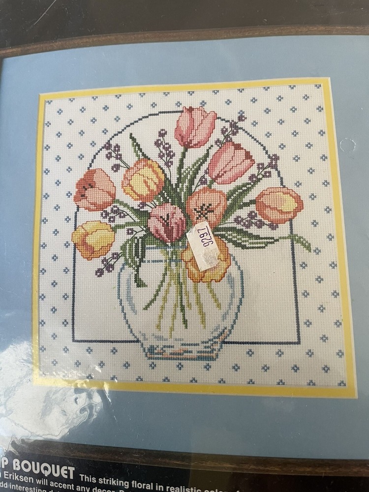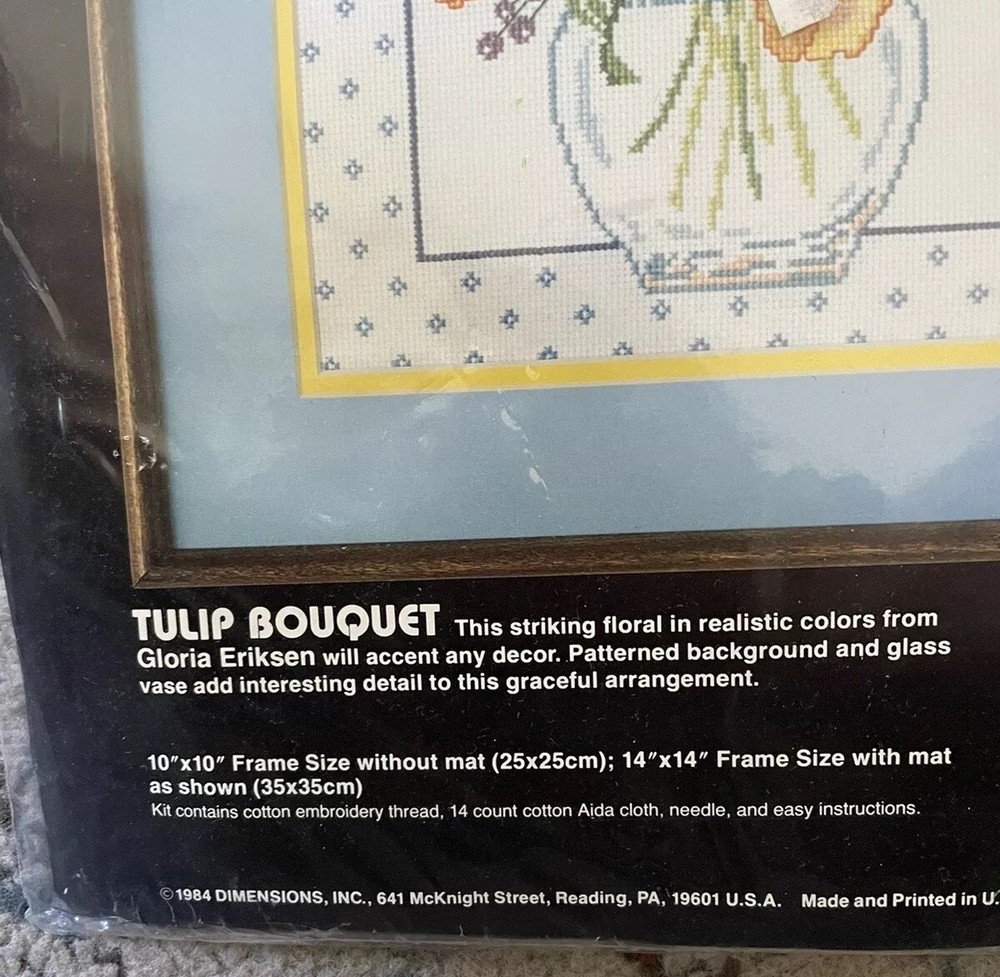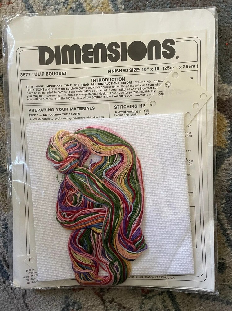 Create a beautiful and intricate cross-stitch masterpiece with this Dimensions counted cross stitch kit. This kit features a Tulip Bouquet design, perfect for adding a touch of nature to your home decor. 14 count counted cross stitch, floss, sorter, instructions in unopened kit. See photos