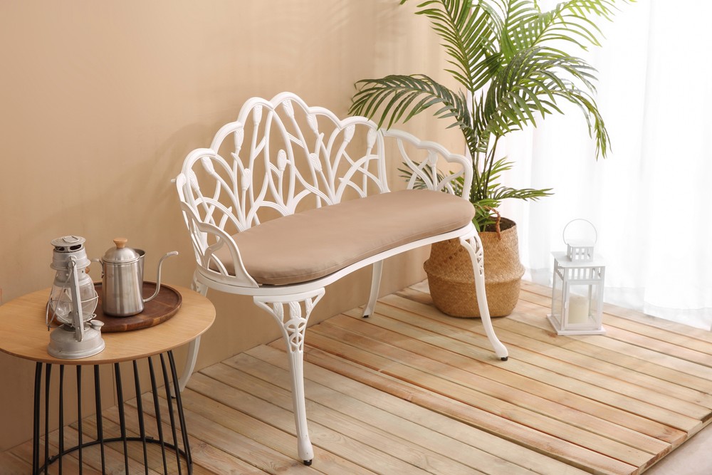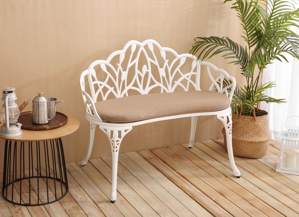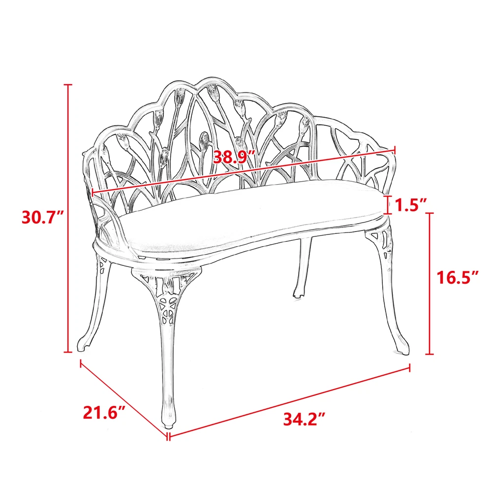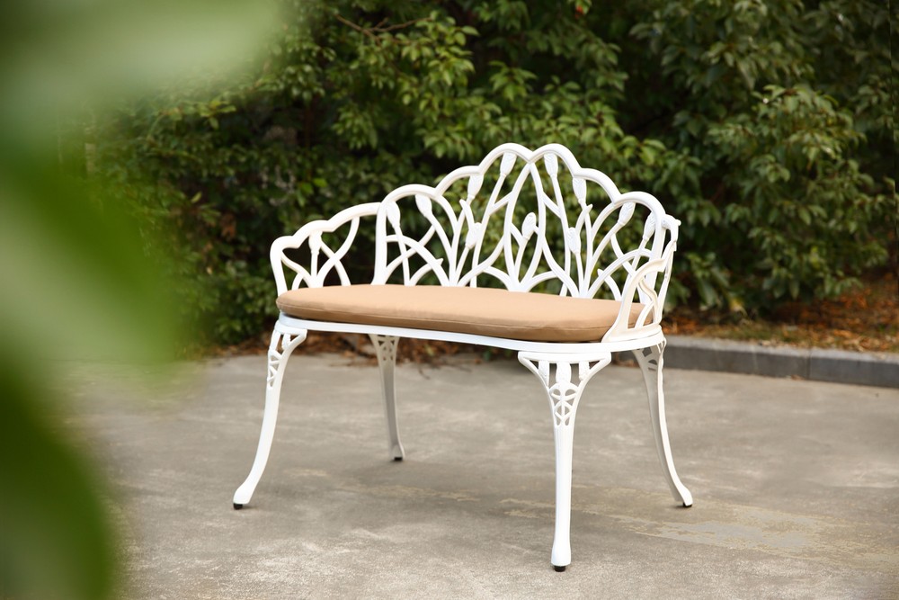 Tulip Patio Garden Bench in Cast Aluminum for Outdoor Spaces