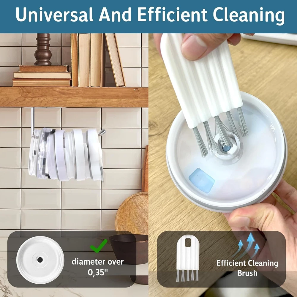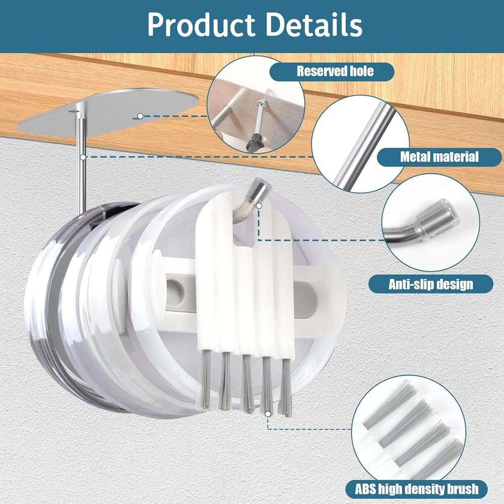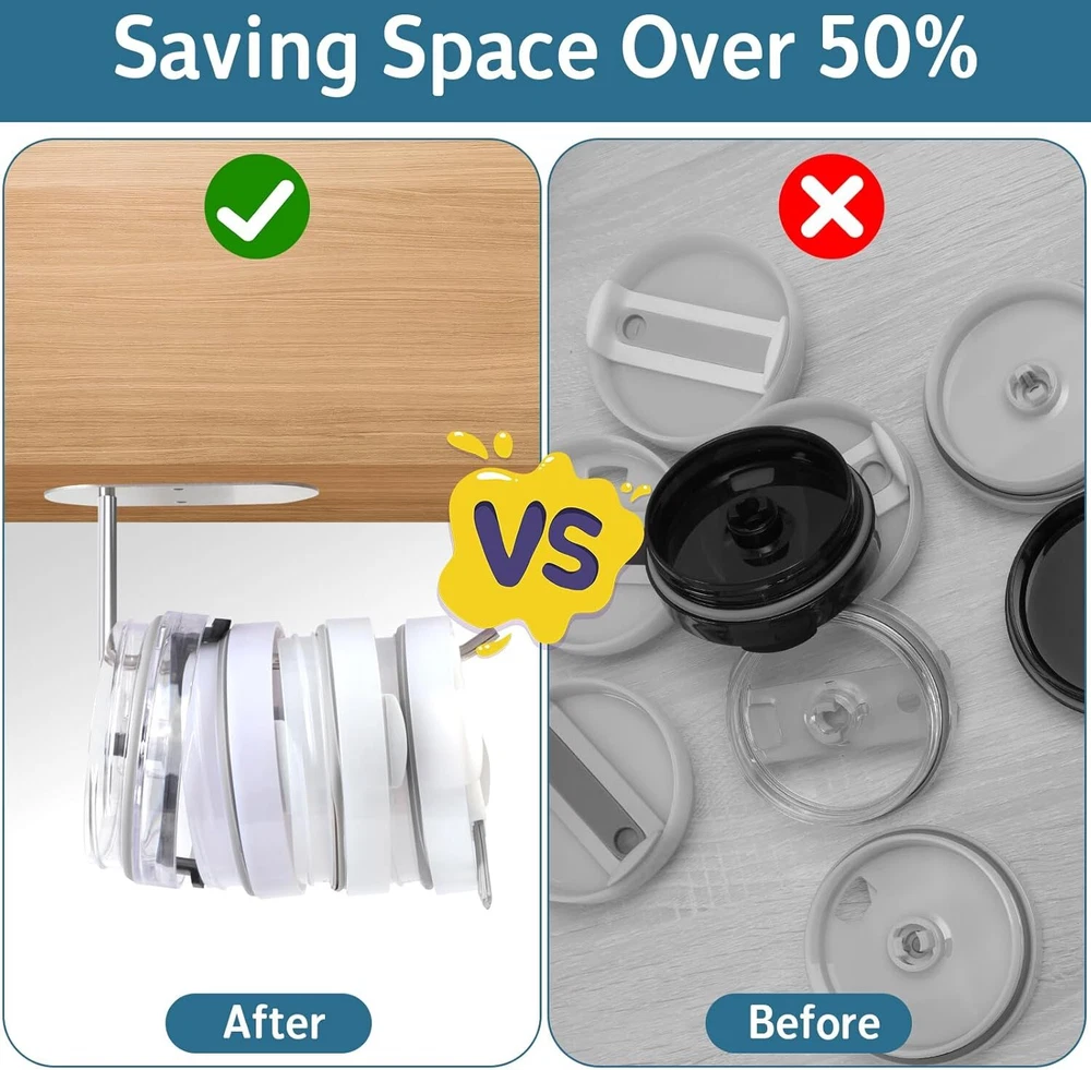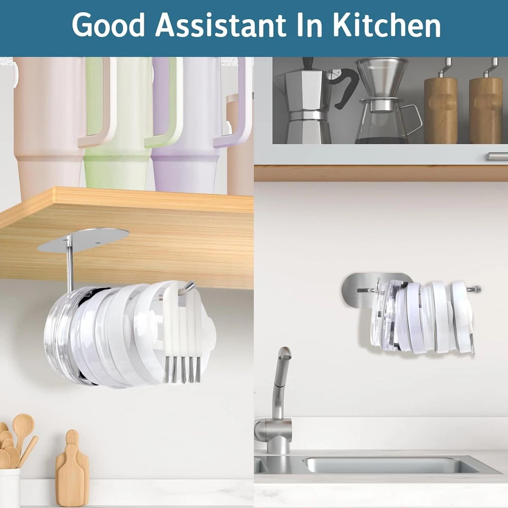 Tumbler Lid Organizer, Saving Space Efficient 2 Hook & 2 Brush KIT Product Details Material: Stainless Steel Color: 2 Hook & 2 Brush KIT Special Feature: Rust Resistant Product Dimensions: 2.75"D x 7"W x 2"H Number of Shelves: 1 Perfect Space-Saving Solution: Tumbler Lid Organizer Revolutionize your tumbler lid storage. Bid farewell to cluttered countertops at least 50% space savings. Versatility meets efficiency with our Tumbler Lid Organizer. Innovative Design :Designed to accommodate various lid sizes and brands, the T-shaped hooks ensure optimal Storage for lids with straw holes over 0.35 inches. Short hooks hold up to 8 lids, while long hooks store up to 16 lids.The hook is made of high-quality stainless steel material, which does not rust when exposed to water. The surface is smooth and suitable for sliding the cup cover. The tail is equipped with a silicone anti slip pad to prevent the cup cover from falling off. VS Other:Included cup brush efficiently cleans every nook and cranny of your tumbler lids, making tidying up a breeze.Cup brush uses high-quality ABS bristles, which are strong and resilient and suitable for cups of various materials. The cup brush can also be bent and folded, making it easy to enter the gaps of the cup and remove residual stains from the cup,Making tidying up a breeze. 2 installations:Tumbler organizer for kitchen cabinets offers two optional installation options, ranging from 3M adhesive or screw drilling, for easy installation on smooth or rough surfaces. Equipped with tape, screws, expansion screws, and nuts to ensure safe installation according to your needs. Multi scenario application: Not only Tumbler organizer for kitchen cabinets, but also for horizontal installation under kitchen cabinets for easy access, or vertical installation on ceramic tile walls or wooden supports in kitchens, bedrooms, bathrooms. tumbler lid holder for cups can store both water cup lids and hats, kitchen tissues, etc Gifts and Kitchen Helpers:Don't worry about the tumbler lid storage at home anymore. It's a small gift suitable for giving to your partner, parents, or friends. Not only can tumbler lid holder help your family and friends solve cup storage and cleaning problems. If you have any questions, please provide a 24-hour friendly reply and feel free to email us at any time.