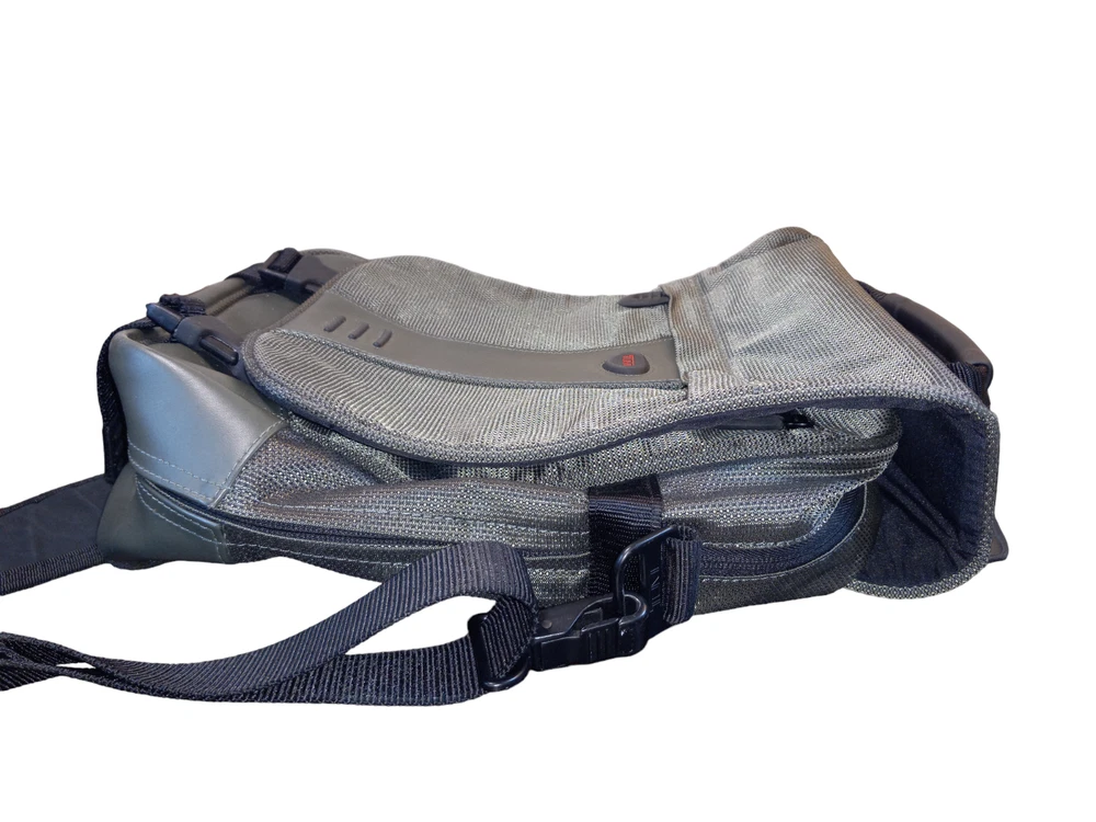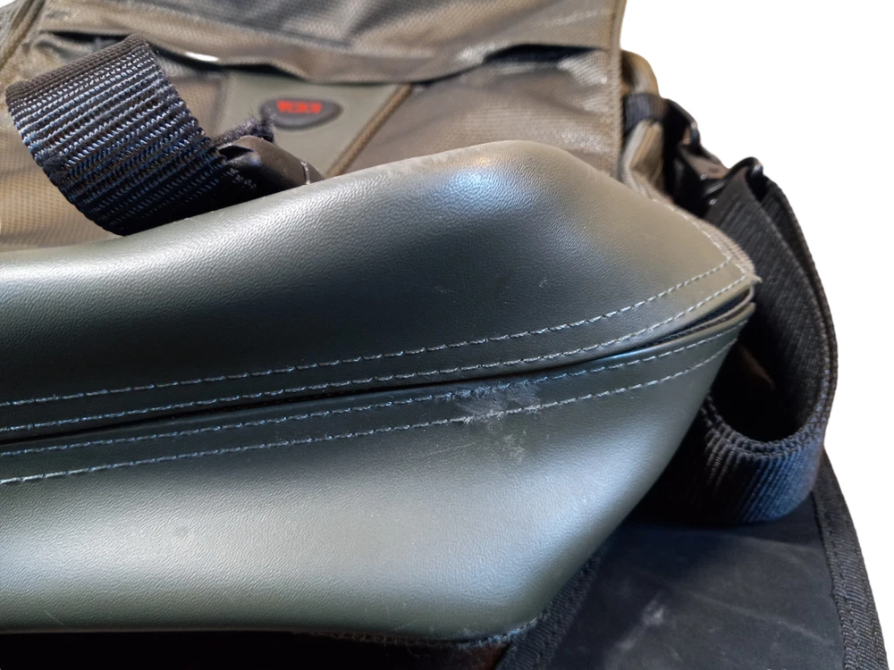 In good condition overall. There is a small scrape on the bottom of the bag.