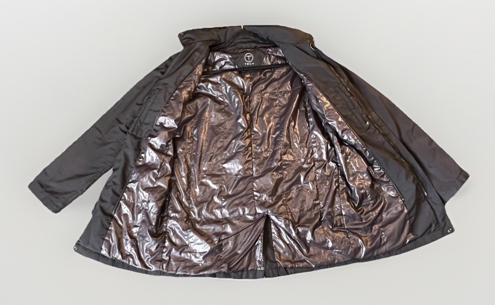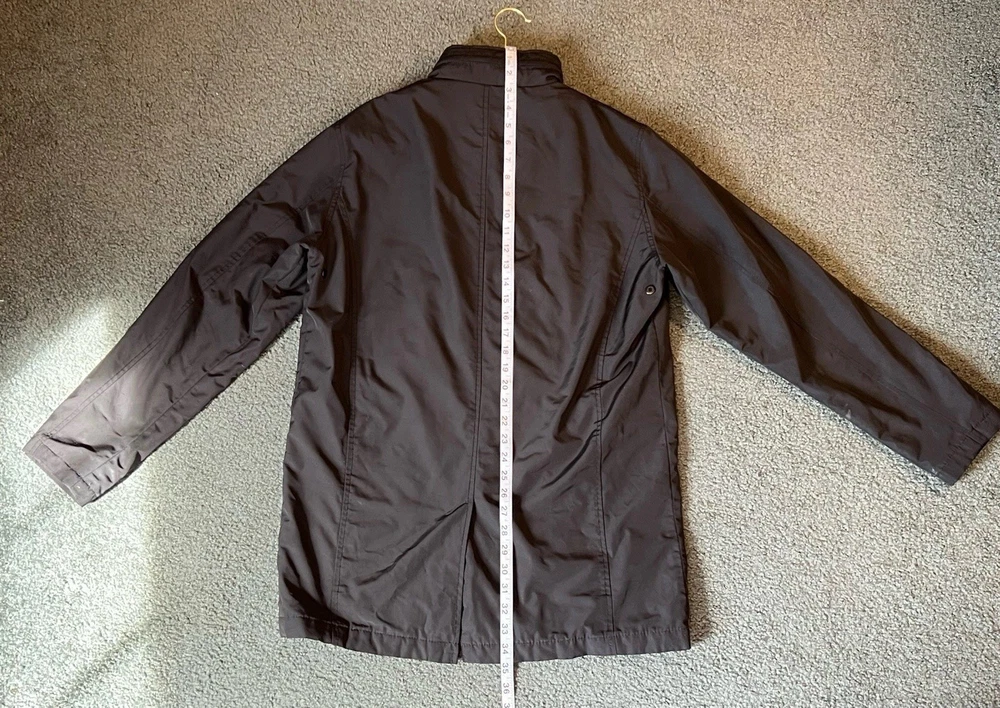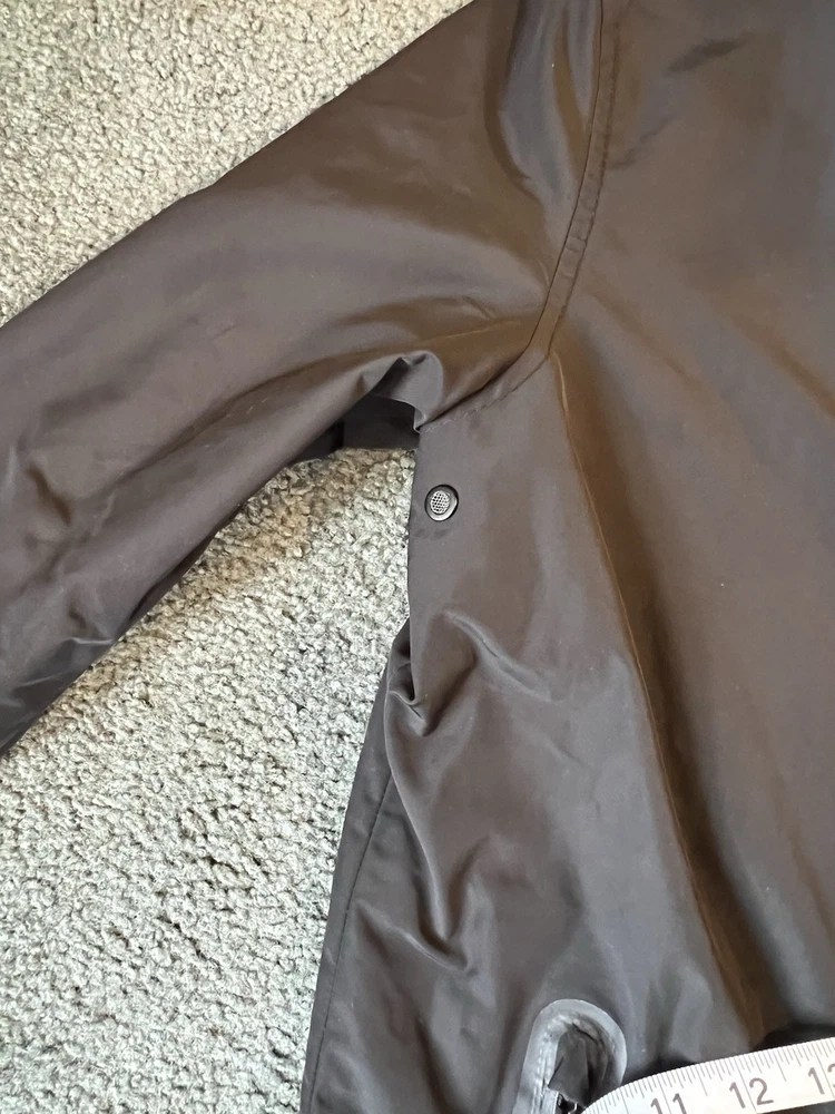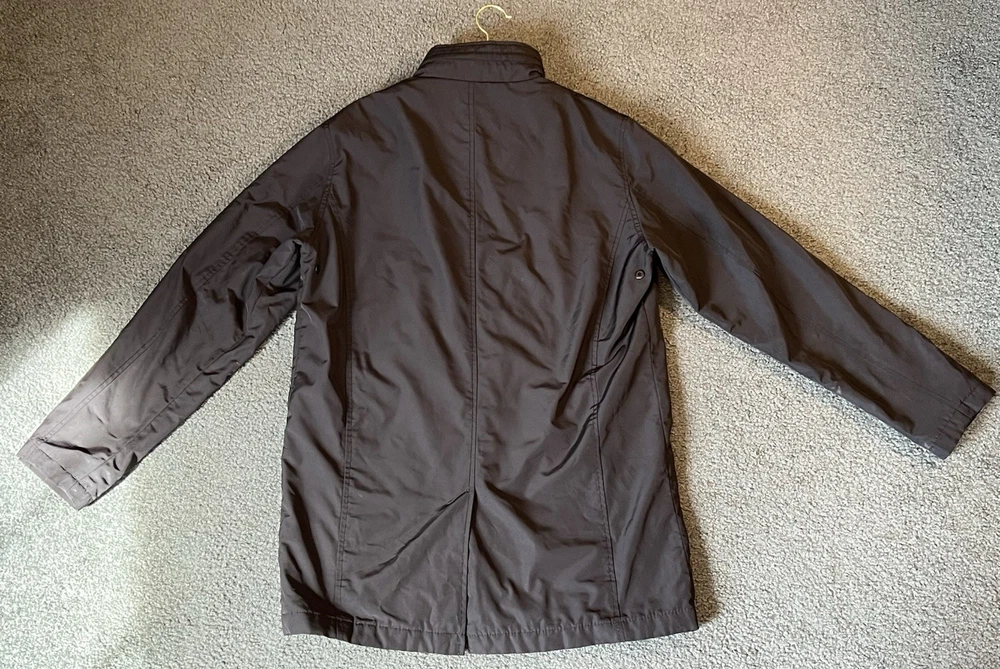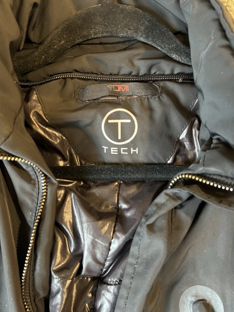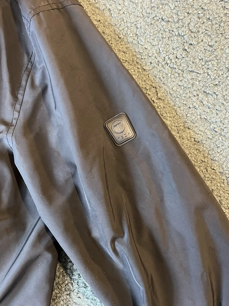 The Tumi T-Tech Men's S Packable Hooded Jacket in Black is a versatile and stylish windbreaker perfect for various occasions, including travel, casual outings, and formal events. Made from durable polyester softshell fabric, this mid-length jacket features a zip and button closure, hood, and is machine washable for easy care. In great condition size small, small blemish on the left sleeve. Feel free to ask any questions!