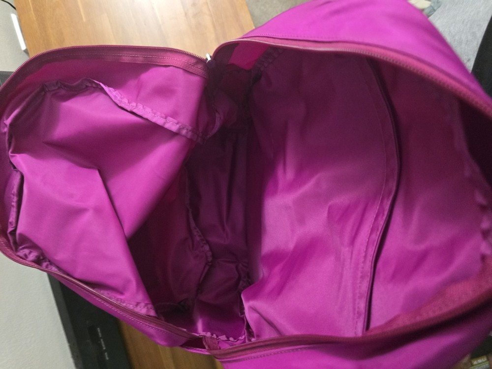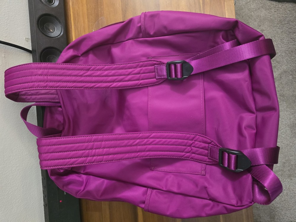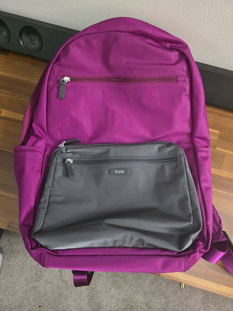 The Tumi Nylon Violet Bookbag is a medium-sized backpack designed for unisex kids, perfect for casual school occasions. Made of durable polyester material in a stylish gray color, this backpack features a zip closure and a comfortable shoulder strap handle style. With a subtle school theme, this TUMI backpack is both practical and fashionable for everyday use.