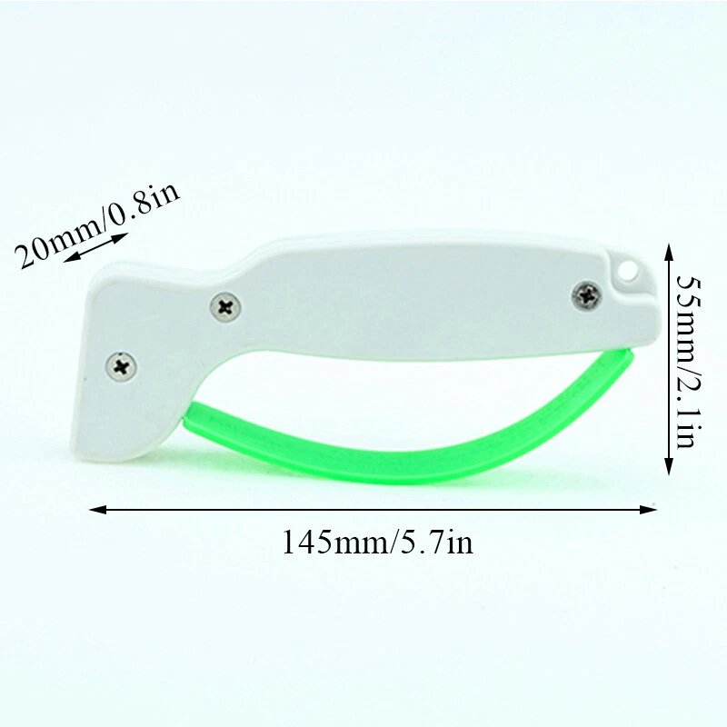 Features: *Sharpening blades are crafted from diamond-honed tungsten carbide, one of the hardest known materials. *With it's unique design, the sharpening blades can be reversed doubling its life span. *Allows you to sharpen most blades in about 10 seconds. *Full-length cover for right - and left-handed users to protect your fingers throughout the sharpening process. *The sharpeners don't rust and can be easily cleaned with soap and water or in a dishwasher. *This is the perfect sharpener for chef cutters, paring cutters, filleting cutters, meat cleavers. *Not suitable for serrated cutters, ceramic cutters, scissors. Specifications: 100% Brand new and high quality. Size:145*55mm/5.7*2.1inch Color: green Material: Plastic,Tungsten Steel Note: 1.Due to the light and screen difference, the item's color may be slightly different from the pictures. Please understand. Package:1 pcs Handheld Sharpener On Jan 14, 2025 at 22:26:27 PST, seller added the following information:
