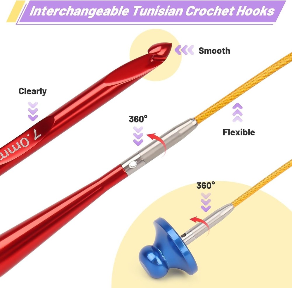 Tunisian Crochet Hooks Set - 12 Sizes 3.0mm-10.0mm with 4 Interchangeable Cables ‹ › ‹ › ‹ › ‹ › ‹ › ‹ › ‹ › ‹ › ‹ › Tunisian Crochet Hooks Set 12 Sizes (3.0mm-10.0mm) with 4 Interchangeable Cables Unlock the art of crocheting with this exquisite Tunisian Crochet Hooks Set, meticulously designed for both novices and experts alike. Exceptional craftsmanship meets versatility to enhance your creative pursuits. Features: Interchangeable Crochet Hooks: Smooth and snag-free connection allows for 360° rotation, reducing yarn tangles and operational friction, ensuring you focus on your creation. Unique Mechanism: Features a “single pick-up, single drop-off” method, paired with long handles and interchangeable cables to create rich, structured fabrics. 12 Sizes + 4 Cables: Includes 12 hook sizes from 3.0mm to 10.0mm and 4 cables (40/60/80/100cm) to tackle projects of any scale. Aluminum Construction: Lightweight yet durable, these finely polished hooks ensure smooth yarn gliding without snagging, compatible with all types of fibers. Ideal for Gifting: Perfect for Christmas, Mother’s Day, or as a beginner's crochet starter set, merging practicality with the joy of handmade craftsmanship. Benefits: Fine-tuned texture and efficiency for stunning results. Effortlessly manages tension for beginner to advanced projects. Versatile tools suitable for any crochet endeavor—from small trinkets to large, cozy blankets. Thoughtful gift choice that inspires creativity and personal expression. Why Choose Our Tunisian Crochet Hooks Set? Elevate your crocheting experience with our Tunisian Crochet Hooks Set, thoughtfully designed to enhance the efficiency and texture of your creations. With its interchangeable design, you can enjoy smooth, hassle-free crafting while working on intricate patterns. This set includes all the essential tools for crafting unique pieces, making it the perfect gift for aspiring artisans or seasoned crochet enthusiasts alike. Experience the joy of creating beautiful, handmade items and choose our Tunisian Crochet Hooks Set today! Shipping Free & Fast Shipping - We offer free shipping to most of the USA with a normal delivery time of 3-7 days. However, due to the current situation, additional delivery time (up to 3 weeks) may be required for some items. Alternative Carriers - We may use alternative carriers (e.g. USPS, FedEx, UPS, etc.) to ensure your package arrives safely and on time. Due to the use of multiple carriers, we are unable to provide a tracking number automatically. Handling Time - Orders are processed and shipped within 1-2 business days of receiving cleared payment. Shipping Restrictions - Shipping to Alaska, Hawaii, Puerto Rico, Guam, and other US territories may incur shipping charges or delivery restrictions. Please contact us before ordering, or your order can be refunded/cancelled. State Restrictions - There may be restrictions based on your state of purchase. For example, certain items may not be shipped to California due to state regulations. Contact for Tracking Updates - If you require tracking updates or have any concerns about the delivery of your order, please feel free to contact us, and we will be happy to assist you. Return 30-Day Hassle-Free Returns - We want you to be completely satisfied with your purchase. If you are not, you can return the item within 30 days of receiving it for a full refund or exchange. Easy Return Process - To start a return, simply contact us and we will provide you with a prepaid return shipping label and detailed instructions. Restocking Fee - There are no restocking fees for returns. However, the buyer is responsible for return shipping costs if the return is not due to a seller's error. Refund Processing Time - Refunds will be processed within 5 business days of receiving the returned item in its condition. Payment We accept all major credit cards, PayPal, and Apple Pay for your convenience. Your payment information is secure and encrypted to ensure a safe and seamless transaction. Please complete your payment within 3 days of purchase to avoid any delays in shipping. Feedback Your feedback is extremely important to us. We strive to provide the best products and customer service possible. If you are satisfied with your purchase, please take a moment to leave us a positive review. If you have any concerns or issues with your order, please contact us before leaving negative feedback. We are committed to resolving any problems and ensuring your satisfaction. Contact Us If you have any questions or concerns, please feel free to out to our customer support team. You can contact us through the eBay messaging system. We are available Monday to Friday, 9:00 am to 5:00 pm EST, and we will do our best to respond to your inquiry within 24 hours. Buy it now and enjoy a pleasant shopping experience! Model: Crochet Hooks Set MPN: Crochet_Hooks_Set Unit Quantity: 12 Type: Tunisian Crochet Hooks
