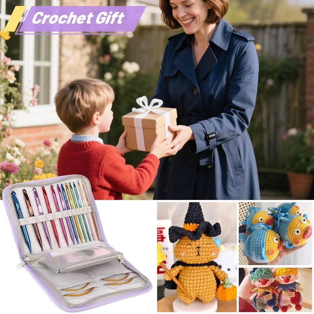 Ergonomic Crochet Hook Set, 12 Sizes with Case - Ideal for Beginners and Gifts