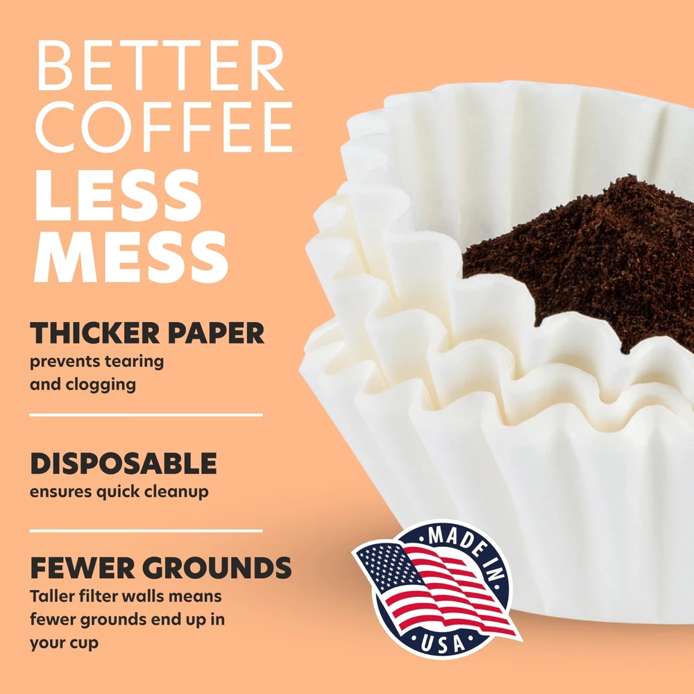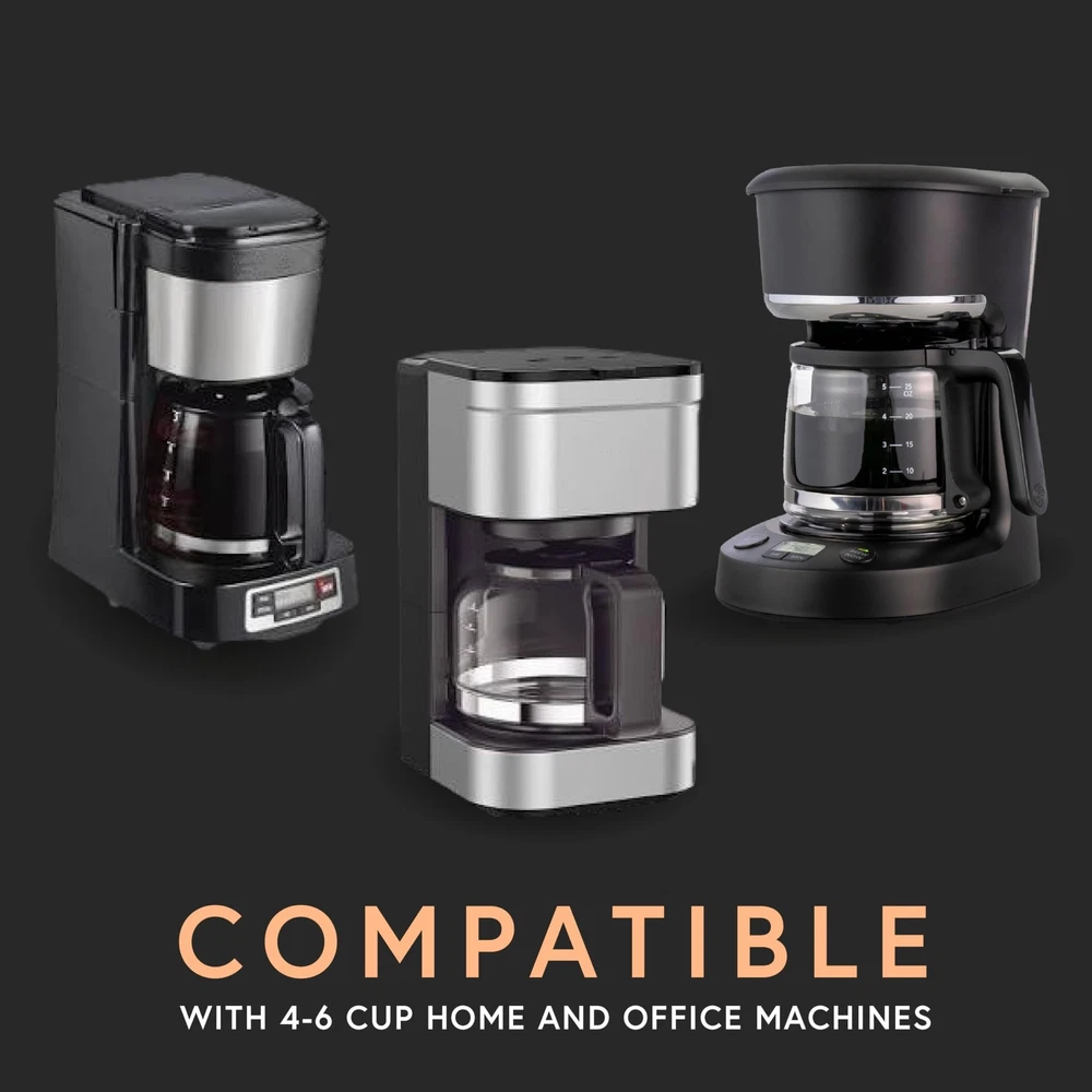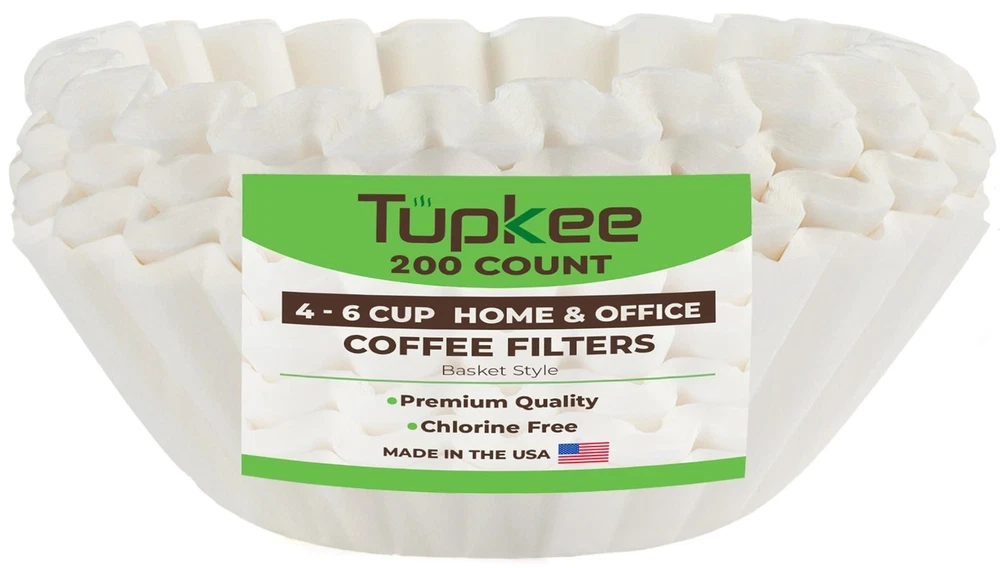 The Tupkee 4-6-Cup High quality Hosehold Coffee Filters is ideal for those coffee lovers who start their day off with a stimulating cup of coffee, as a great cup of coffee starts with great filters. For use with 4-6 Cup Basket Style Household Coffee Brewers - Compatible with Mr. Coffee, Proctor Silex, Bunn, Hamilton Beach, Regal Ware, Sears, West Bend, Black & Decker Coffee Maker. Features and Benefits PREMIUM QUALITY FOR BETTER TASTING - Heavy-weight Special Grade paper so the water flows properly through coffee ground, that provide the perfect extraction for a richer more flavorful coffee PREVENTS GROUNDS IN YOUR COFFEE - Thicker Paper and Ridged construction hold their shape well and don't collapse or tear, to prevent coffee grounds from overflowing while brewing and making a mess, Disposable design ensures quick cleanup after each use CHLORINE FREE The natural color from paper is brown, In order to become white, it must be processed, most papers filters are bleached with chlorine in order to achieve its white color, Tupkee white filters are bleached using oxygen and are Chlorine Free ENVIRONMENTALLY FRIENDLY – Tupkee 4-6 Cup Filter is 100% biodegradable, Compostable, capable of disintegrating into natural elements in a compost environment, leaving no toxicity in the soil Count 200 Filters Measurement 7" in diameter laying flat 3-1/4" in diameter at the base of the filter Made in the USA Worry FREE Purchase as we stand behind our products with our Unconditional Satisfaction Guarantee Add to cart NOW to create your perfect cup of Coffee PREMIUM QUALITY PAPER FOR A RICH, ROBUST CUP OF COFFEE – Tupkee coffee filters 4-6 cup are made from heavy-weight special grade paper, so the water flows properly through coffee ground, and prevents grounds from filtering through, allowing for better immersion of the grounds in hot water, that preserves the taste and provides the perfect extraction for a richer more flavorful coffee PREVENTS GROUNDS IN YOUR COFFEE - Thicker Paper and Ridged construction hold their shape well and don't collapse or tear, to prevent coffee grounds from overflowing while brewing and making a mess, and prevent finding grounds in your coffee that can ruin your coffee’s taste CHLORINE FREE - The natural color from paper is brown, in order to become white, it must be processed, most papers filters are bleached with chlorine in order to achieve its white color, Tupkee white filters are bleached using oxygen, an elemental chlorine-free (ECF) bleaching method, to ensure there is no detectable level of dioxin, harsh bleach or chemicals in your coffee STRONG MATERIAL, NO RIPING FOR EASY REMOVAL – Our disposable and compostable filters are made from strong material that won't disintegrate when wet, this makes it easy to grab and dump used grounds after brewing, ensuring an easy removal and clean-up without making a mess ENVIRONMENTALLY FRIENDLY – Tupkee 8-12 Cup Filter is 100% biodegradable, Compostable, capable of disintegrating into natural elements in a compost environment, leaving no toxicity in the soil FOR 4-6 HOUSEHOLD COFFEE MAKERS - Smaller-sized coffee Fits Most 4-6 Cup Basket-Style electric Coffee Makers, Including Mr. Coffee, Proctor Silex, Bunn, Hamilton Beach, Regal Ware, Sears, West Bend, Black & Decker EXTRA USES - These high-quality, lint-free coffee liners are also great for arts and craft projects, glass cleaning, straining yogurt and ricotta, and provide residue-free polishing, and for making craft projects as the paper was thick enough to be painted without tearing