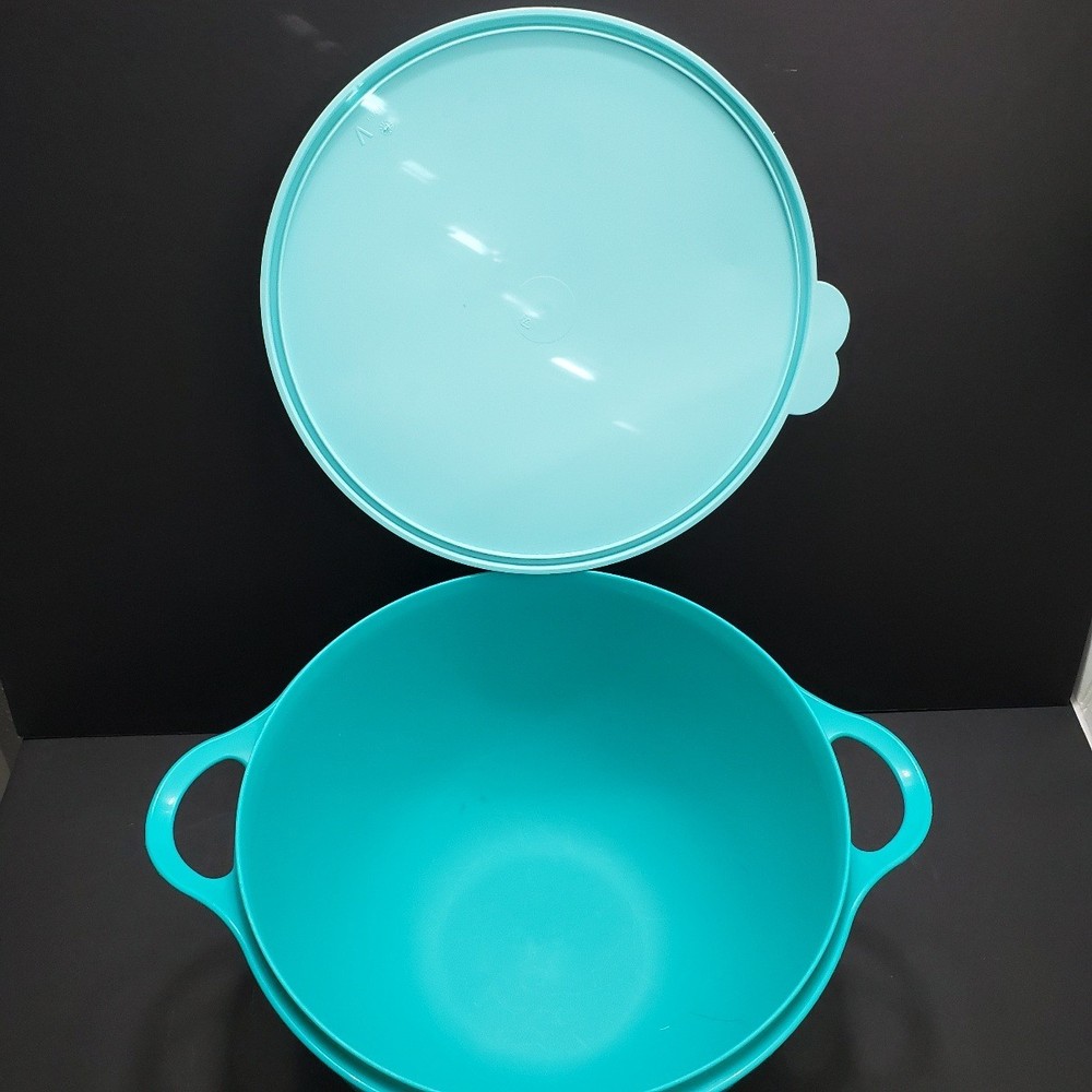 Tupperware Thatsa Mega Bowl Teal 10L /42 Cup Double Handle + 1.4L small bowl & lid