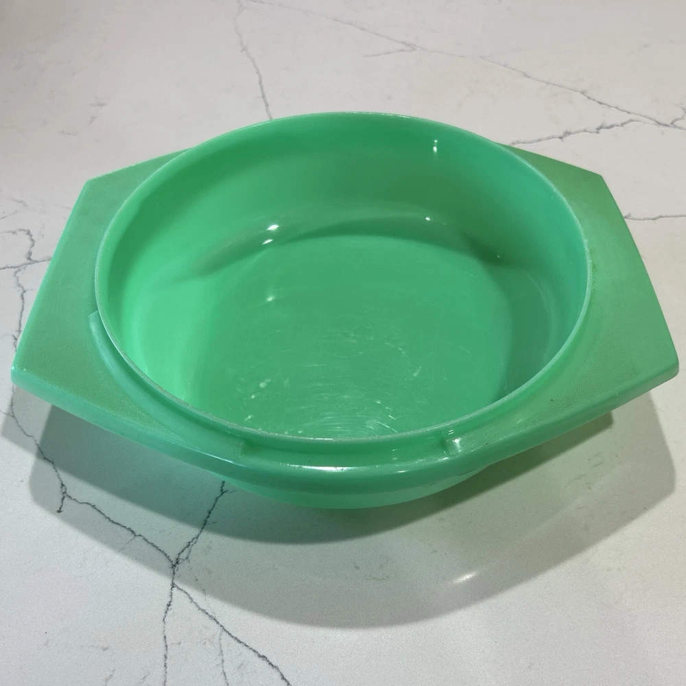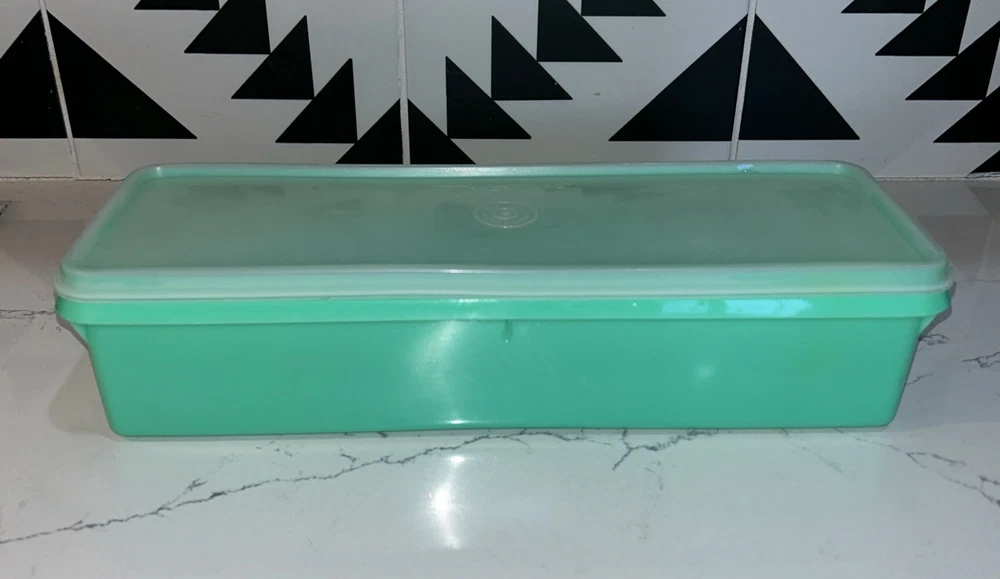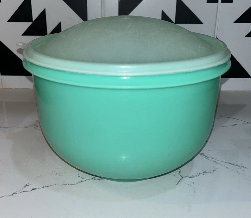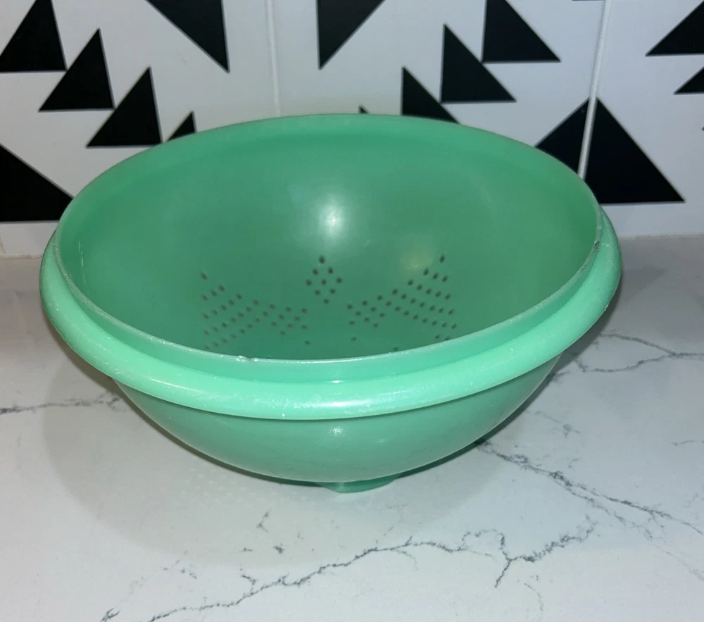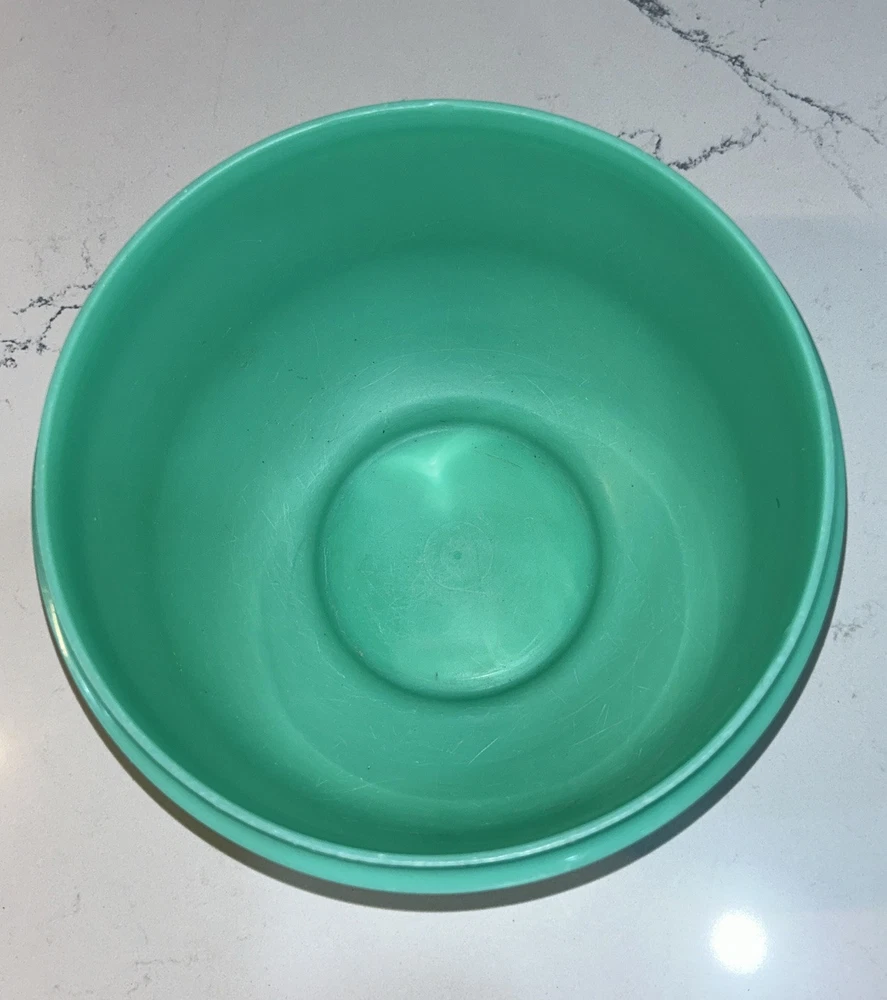 This vintage Tupperware storage container set is a must-have for any kitchen! The set includes 9 items, with a variety of shapes and sizes to fit all your storage needs. The containers are made of durable plastic and feature a solid green color, with a retro/vintage style that adds a touch of charm to your kitchen. The set includes a lettuce crisper, veggie crisper, bread container, grater, and strainer, as well as lids with an airtight seal to keep your food fresh and easy to clean. These containers are an original Tupperware product, made in the United States, and are in excellent condition. Don't miss out on this unique and practical collectible! Please note any imperfections, discoloration, scratches, etc. in the photos. Will provide more photos upon request. Listing 1499