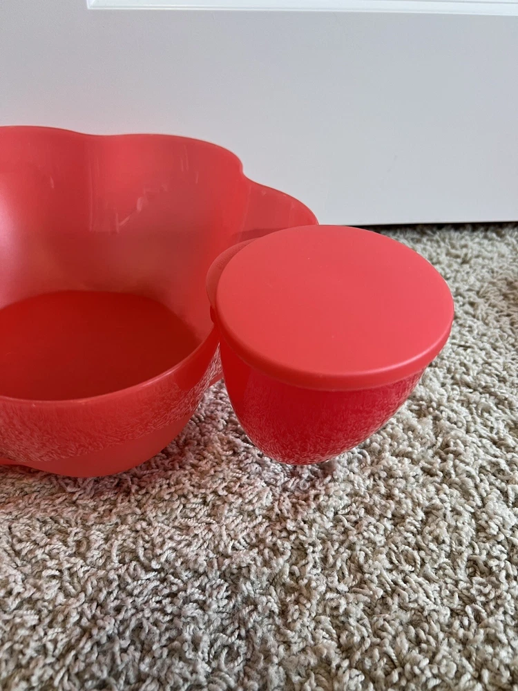 Material:PlasticNumber of Place Settings:naBrand:TupperwareUPC:Does not applySet Includes:BowlType:Serving BowlStyle:ModernTheme:PartyColor:RedPattern:FlowerTime Period Manufactured:2020-NowShape:FlowerOriginal/Reproduction:Originalgtin13:Does not applyFinish:MatteCountry/Region of Manufacture:United StatesOccasion:All Occasions