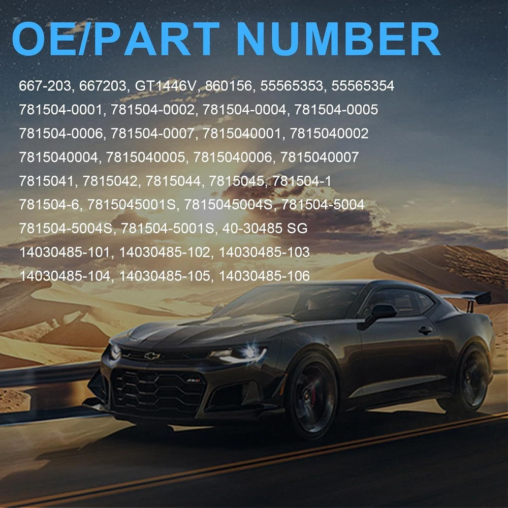 Turbo charger For Chevrolet Chevy Cruze Sonic Trax Buick Encore 1.4L 55565353 Autoparts-Accs Introduction: Autoparts-Accs has been providing the quality products in automotive parts & accessories for years. Being a professional e-Bayer that provides you guys the greater shopping experiences is out mission. Product 100% Brand New Product, Quality Ensured, Provide You the Best Confident and Support! 90 Days Warranty, Money Back Guarantee, No Risk, No Hassle! Shipping Free Shipping. Handling time: 1 Business day. Item is shipped to ebay address.Leaving correct.address can minimize delay. Tracking information. will be sent once item is shipped. Contact We have a friendly and dedicated support teams to handle any problems you come up with our products. Please contact us first via email or message for replacement, refund or technical problem caused by any reason. Description: Autoparts-Accs Turbo charger For Chevrolet Chevy Cruze Sonic Trax Buick Encore 55565353 1.4L π [VEHICLE FITMENT]: Compatible with GM (Chevy) Cruze 2011-2015; Sonic 2012-2020; Trax 2013-2021; Compatible with Buick Encore 2013-2021 ---1.4L Gas VVT Turbocharged Ecotec LUV π [REFERENCE PART NUMBER]: 781504-0001, 781504-0002, 781504-0004, 781504-0006, 781504-0007, 7815040001, 7815040002, 7815040004, 7815040006, 55565353, 55565354, 667-203 π [KEY FUNCTIONS]: An sealing device is installed between compressor wheel and bearing support, prevent oil from leaking into intake manifold and eventually cause engine burn oil. π [TURBOCHARGER FEATURES] : Turbo kit is equipped with wastegate and actuator, and this compressor and turbine housing is made of high grade alloy to rapidly dissipate heat at extreme rotate speed, ultimately extending the service life of the product. π [ABOUT WARRANTY]: 3 Months Unlimited-mileage Quality Guarantee. Features: *Product Material 1. Turbine housing: Ductile iron qt450-10- temperature resistant up to 700β 2. Steel turbine wheel: K418 alloy - high oxidation stability and resistance up to 900β 3. Compressor housing: ZL104 aluminum with lightweight 4. Compressor wheel/blades: Cast aluminium blades β superior air tightness & corrosion resistance *Product 1. OEM-quality and size with little modification 2. Rich experience in turbo production and own factory 3. Quality assurance 4. High-Speed oil seal ring 5. Strict quality inspection 6. Precision clearance *All necessary gaskets included for ease of installation Specifications: 100% Brand New Warranty :90 Day Free Return:30 Day Color:As Show Turbo Model: GT1446SLM, MGT14, MGT1446MZG, MGT1446MZGL Engine: A14NET Cooling Type: Water + Oil Cooled Thrust bearings: 270 Degrees Replace Parter number : 55565353, 8471446,781504,40-30485 SG , 14030485-101 , 14030485-102 , 14030485-103 , 14030485-104 , 14030485-105 14030485-106 55565353 , 7815040001 , 781504-0001 , 7815040002 , 781504-0002 , 7815040004 ,781504-0007 781504-0004 , 7815040005 781504-0005 , 7815040006 , 781504-0006 , 7815040007 , 7815041 , 781504-1 , 7815042, 781504-2 , 7815044 , 781504-4 , 7815045 , 781504-5 , 7815045001S 781504-5001S , 7815045004 ,781504-5004 , 7815045004S , 781504-5004S , 7815045006 ,781504-5006 , 7815045006S, 781504-5006S ,7815045007S , 781504-5007S , 781504-5013S , 847-1446 , 860156 , E55565353, 55565354, E55565354 Fitment Engine Specific: for 1.4L 1364CC 83Cu. In. l4 GAS DOHC Turbocharged for 1.4L 1399CC 85Cu. In. l4 GAS DOHC Turbocharged for Buick Encore 1.4L 140HP 2013 -2021 for Chevrolet Cruze 1.4L 140HP 2011-2016 for Chevrolet Cruze Limited 1.4L 140HP 2016 for Chevrolet Sonic 1.4L 140HP 2012-2020 for Chevrolet Trax 1.4L 140HP 2010-2019 for Opel Astra J 1.4L 140HP 2009- for Opel Meriva B 1.4L 140HP 2009- for Holden Cruze 1.4 Turbo ECOTEC A14NET 1364ccm 103Kw 140HP for Buick Encore: for Buick Encore Base Sport Utility 4-Door for Buick Encore CX Sport Utility 4-Door for Buick Encore CXL Sport Utility 4-Door for Buick Encore Essence Sport Utility 4-Door for Buick Encore Preferred Sport Utility 4-Door for Buick Encore Sport Touring Sport Utility 4-Door for Chevrolet Cruze : for Chevrolet Cruze L Sedan 4-Door for Chevrolet Cruze LS Hatchback 4-Door for Chevrolet Cruze LS Sedan 4-Door for Chevrolet Cruze LT Hatchback 4-Door for Chevrolet Cruze LT Sedan 4-Door for Chevrolet Cruze Premier Hatchback 4-Door for Chevrolet Cruze Premier Sedan 4-Door for Chevrolet Sonic: for Chevrolet Sonic LS Sedan 4-Door for Chevrolet Sonic LT Hatchback 4-Door for Chevrolet Sonic LT Sedan 4-Door for Chevrolet Sonic Premier Hatchback 4-Door for Chevrolet Sonic Premier Sedan 4-Door Packing List: 1x Turbo charger 55565353 ( as shown in the picture ) NOTE: (1) Items would be shipped within 24 hours with cleared payment(Exclude Weekend and Holidays) (2) Items wont be shipped to Puerto Rico(Please check your address before placing an order!) (3) Please allow 1-3mm differs due to manual measurement. Due to the different display and different light, the picture may not reflect the actual color of the item (4)It would be highly appreciated if you might contact us first once you have any problems concerning the items. And you can expect all the issues would be resolved ASAP! Payment Delivery details Terms of sales About us Contact us Payment 1.Payment must be received within 7 days after winning the itemοΌUPI (Unpaid Item Case) will be filed automatically if buyers fail to make the payment in 7 days after item ends. 2.If you have difficulty paying for the item, please email us to cancel the order Delivery details 1.Items will be sent out in 48 hours on payment received from Monday to Friday. Orders during weekends and holidays will be posted in the following working day. 2.Please make sure your shipping address and the order information is correct before placing an order. We will not be responsible for item loss due to wrong or unknown address. Terms of sales 1.We accept 30 days return/refund guarantee 2.If the item you received is faulty, damaged or incorrect, or any further problems, you can return it for 