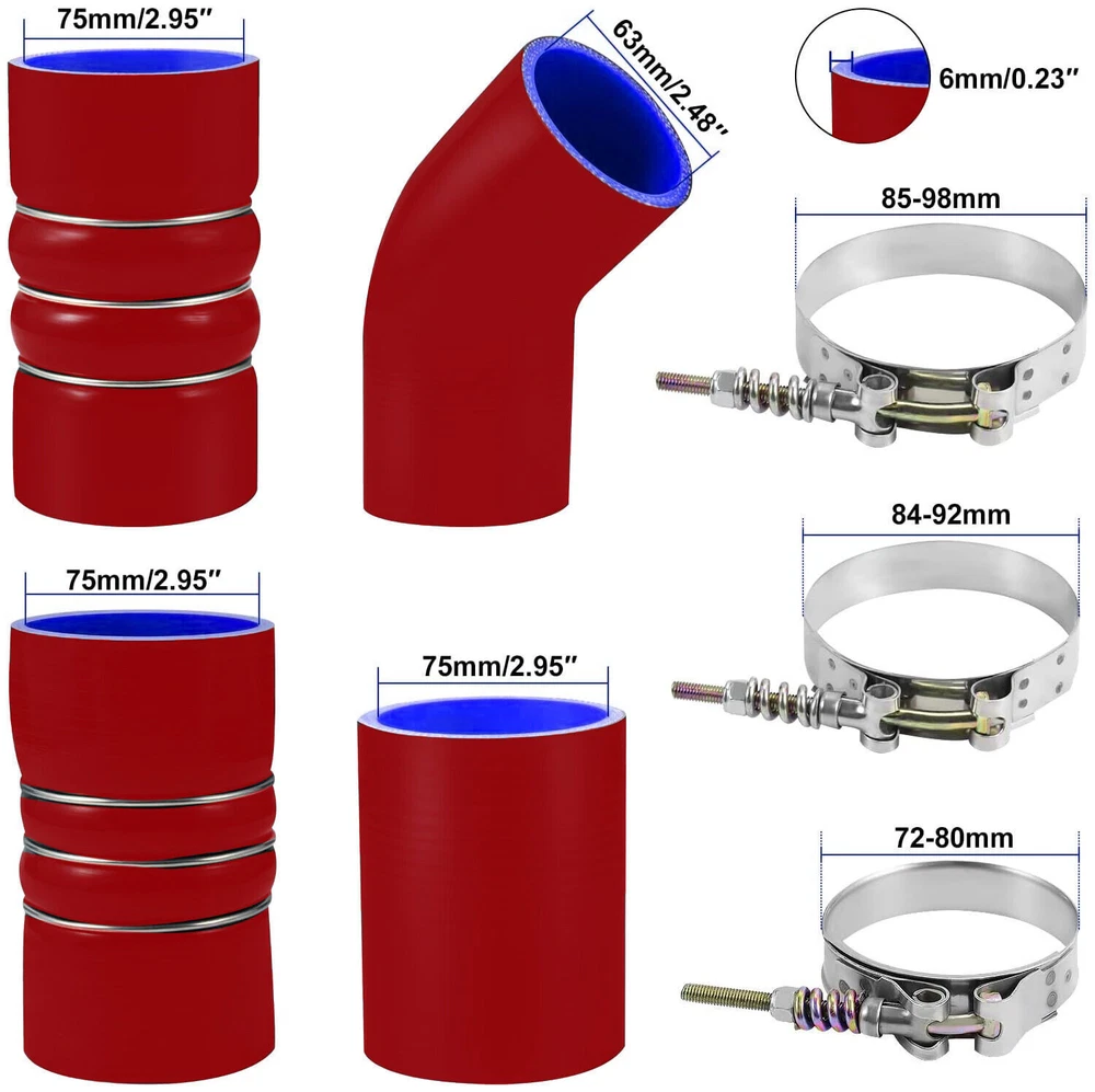 Turbo Intercooler kit Pipe Boot CAC Fits For Ford 6.0L 03-07 F250 F350 F450 F550 Description: An intercooler is any mechanical device used to cool a fluid, including liquids or gases, between stages of a multi-stage compression process, typically a heat exchanger that removes waste heat in a gas compressor. It is used in automotive as an air-to-air or air-to-liquid cooler for forced induction (turbocharged or supercharged) internal combustion engines to improve their volumetric efficiency by increasing intake air charge density through nearly isobaric (constant pressure) cooling. Turbo intercooler boots Kit are used for car turbine intercooler system connection, car intake system connection, car cooling system water tank engine connection, pressure relief valve connection, variable exhaust connection. Specifications: Product Type: Turbo intercooler Main Material: Stainless steel, silicone Multi-layer: 5-Ply reinforced high temperature Hump tube inner diameter 76-83mm and 76mm Straight pipe 76mm Elbow Pipe 63mm The bend is about 35 degrees Color : Black/Red Temperature resistance: -40 to 250℃ high temperature silicone hose Designed to withstand over 100 PSI. Compatibility: 1994-2002 Dodge RAM 2500 / 3500 12 & 24 VAVLE TURBO DIESEL 2003-2007 Fit for Ford F-250 SUPER DUTY 6.0L 363ci OHV V8 DIESEL TURBO 2003-2007 Fit for Ford F-350 SUPER DUTY 6.0L 363ci OHV V8 DIESEL TURBO 2004-2007 Fit for Ford F-450 SUPER DUTY 6.0L 363ci OHV V8 DIESEL TURBO 2003-2007Fit for Ford F-550 SUPER DUTY 6.0L 363ci OHV V8 DIESEL TURBO 2003-2005 Fit for Ford EXCURSION 6.0L 363ci OHV V8 DIESEL TURBO Only Fits 6.0L Turbo Diesel Engine. What You Get: 4 x Replacement Silicone Boots 8 x T-bolt Clamps Note: 1. If you has any problem, please feel free to contact us. 2. Please let us know before you send us the neutral/negative feedback that wont help to finish the issues. And I will definitely try my best to provide the best solutions which would meet your satisfactory. Payment Delivery details Terms of sales About us Contact us Payment 1.Payment must be received within 11 days after winning the item,UPI (Unpaid Item Case) will be filed automatically if buyers fail to make the payment in 11 days after item ends. 2.If you have difficulty paying for the item, please email us to cancel the order. Delivery details 1. Items will be sent out in 48 hours on payment received from Monday to Friday. Orders during weekends and holidays will be posted in the following working day. 2. Please make sure your shipping address and the order information is correct before placing an order. We will not be responsible for item loss due to wrong or unknown address. 3. Products will be shipped from NJ/CA via USPS/UPS/Fedex/DHL. Shipping time is usually 2-7 business days (except Saturday and Sunday.) If you need the item urgently, please contact us for details before you buy. Terms of sales 1.We accept 30 days return/refund guarantee. 2.If the item you received is faulty, damaged or incorrect, or any further problems, you can return it for replacement or refund, please contact our customer service on eBay within 30 days from item received. 3.For damaged items on arrival, please contact us first, sending us an email with a photo is preferred. We will offer solutions to such cases. Full refund or replacement will be guaranteed. About us Welcome to thebetterautopartszone We are specialized in auto accessories for more than 8 years and we have been exporting all kinds of items concerning the auto-parts that come with high quality & best price & excellent after-sales service! Thank you for shppping at our eBay store. Contact us 1.Please contact us first if you have any questions such as product damaged, item not arrived, wrong item sent and item does not work. All those issues would be solved immediately with your satisfactory! 2. Please contact us first before you left us a negative/neutral feedback and we are pleased to solve the problems you met. 3.Please feel free to contact us if you have any problems and we would always be here for your need . Manufacturer Warranty TB Other Part Number TB35241 Fitment Type Direct Replacement Performance Part Yes Country/Region of Manufacture China Universal Fitment Yes Interchange Part Number PO-48 Placement on Vehicle Left Manufacturer Part Number PO-48 Brand TB Color Red/Blue Type Turbo Intercooler Items Included Clamps, Hoses, T-Bolts