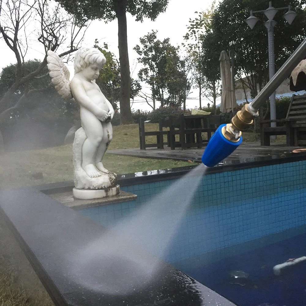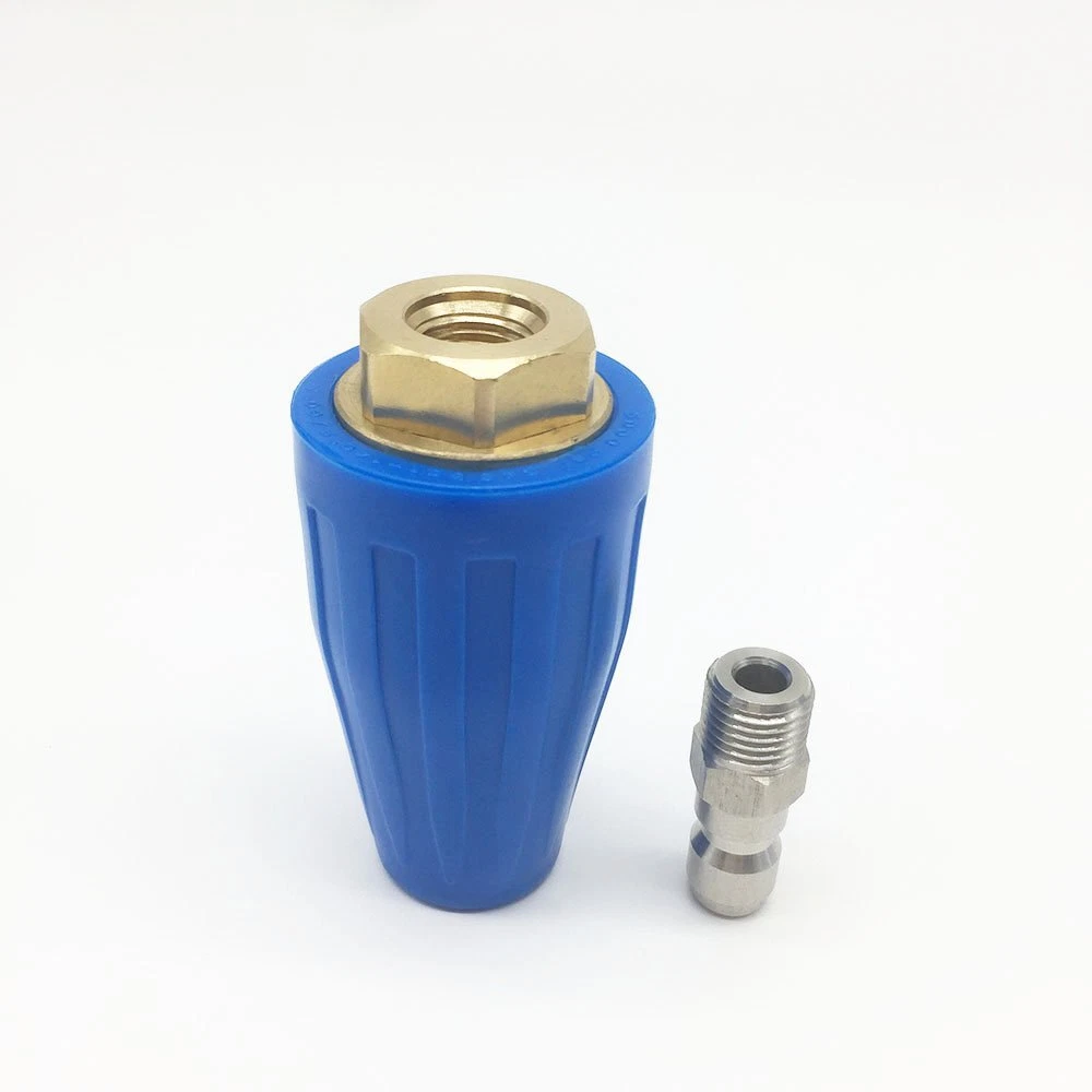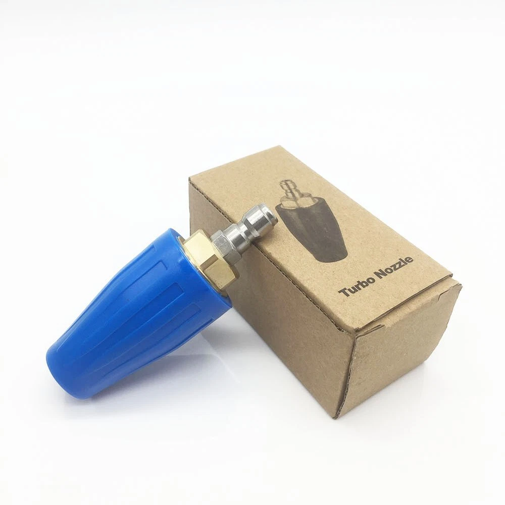 Turbo Nozzle Pressure Washer - the cleaning tool for households and commercial spaces. This high-quality pressure washer attachment comes with 5000 PSI and 6.1 GPM power, ensuring that it can easily blast away dirt, grime, and stains from various surfaces. What makes this pressure washer accessory stand out is its rotating spray feature. The Turbo Nozzle Pressure Washer creates a powerful rotating blast that helps cut through tough dirt and grime in record time. This makes it the perfect tool for cleaning stubborn areas such as driveways, patios, sidewalks, and walkways. Designed as one of the best power washer accessories, the Turbo Nozzle Pressure Washer features a 1/4 inch quick connect for easy installation and use. It can be attached to any standard pressure washer hose, and can be used with a variety of pressure washer attachments. Made from high-quality materials, this pressure washer accessory can withstand heavy use and has a long lifespan. It can successfully clean brick, concrete, and vinyl surfaces, making it a go-to tool for homeowners and business owners alike. Whether you're in the market for pressure washer attachments or are looking to upgrade your existing pressure washer accessories, the Turbo Nozzle Pressure Washer is the perfect choice. It's easy to use, durable, and guaranteed to make cleaning more efficient and effective. In summary, the Turbo Nozzle Pressure Washer is a must-have cleaning tool for anyone who values speed, efficiency, and effectiveness. Order yours today and experience the power of pressure washing with the best power washer accessory on the market! Clean Faster: The turbo nozzle cleans up to 200% faster than standard nozzles, making it a great choice for cleaning brick, concrete, and vinyl. Multiple Sizes: Ceramic orifice 5.5, 6.1 GPM. We offer different sizes of turbo nozzles to suit different machines, including sizes 2.5, 3.0, 3.5, 4.0, 5.0, 5.5, 6.0, 6.5, 7.0, and more. High Performance: With a maximum pressure of 5000 PSI and a maximum temperature of 140° F, this turbo nozzle is designed for high-performance cleaning. Durable Materials: Made with a ceramic nozzle, brass, and a rubber protective sleeve, this turbo nozzle is built to last. Easy to Connect: The inlet features a 1/4" stainless steel quick connect plug, making it easy to connect to your machine.