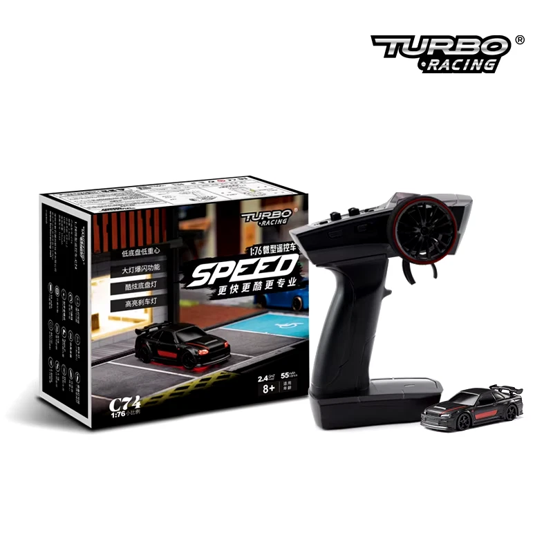 Turbo Racing 1:76 C71 C72 C73 C74 C75 RTR Flat Running Toys on Road RC Car Proportional Remote Control Toys for Kids and Adults Model Name:C71 C72 C73 C74 C75 On Road RC car Frequency Bran:2.4GHz Slope angle: 30° 1:76 RC car size:67.5*28.8*19.5mm Certificate:CE/FCC/ROHS/CCC Control Distance:30M Playing time: 30min Drive mode: Two-wheel drive Trim function: Yes Proportional steering: proportional steering Color: RED BLACK Battery capacity: 75mAh (3.7V) Package List 1:76 RC car(C75) x1 P21 Remote control x1 Steps for usage x1Free car shells without color x2 Type-C x1 Pin ejector x1 Features
