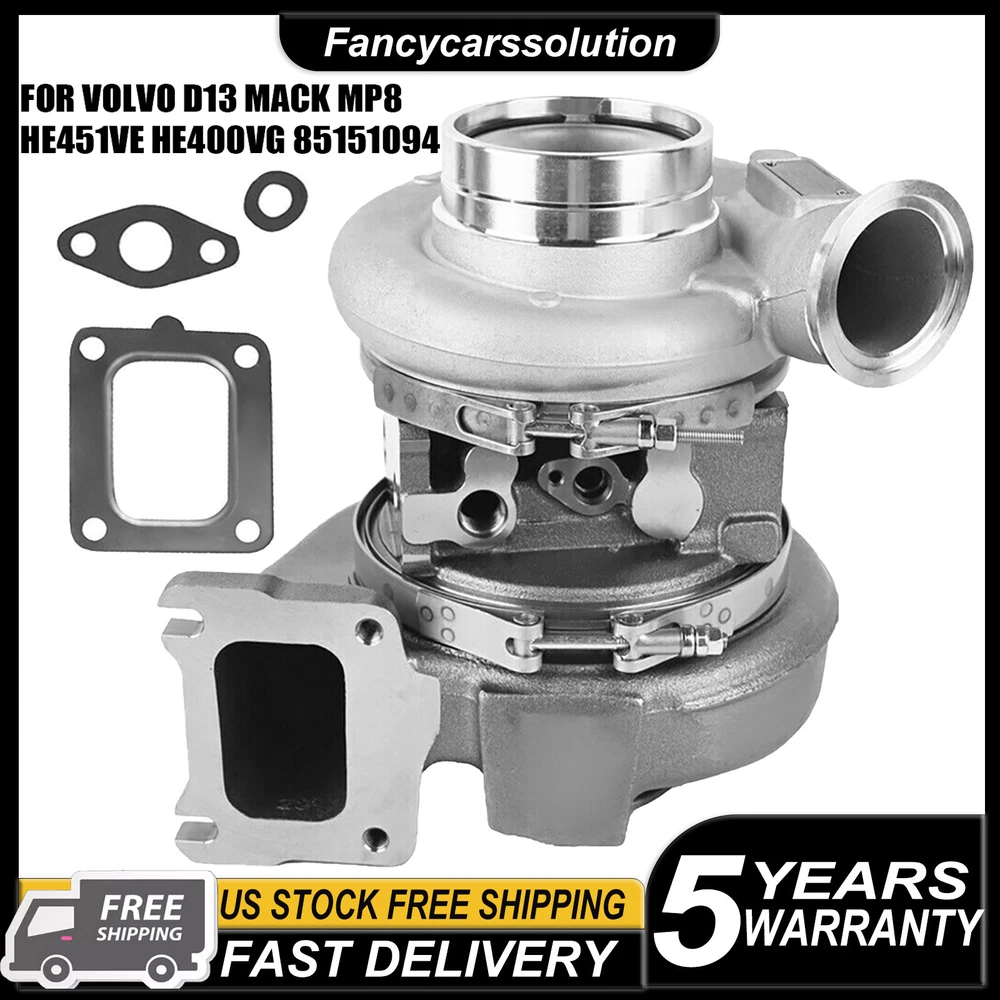 Product Description F eatures: 1. Good Quality: High quality for long-lasting durability, engineered from high-quality materials to improve the reliability and durability . 2.T his compressor and turbine housing is made of high grade alloy to rapidly dissipate heat at extreme rotate speed, ultimately extending the service life of the product. 3. Each part is crafted with hard-wearing strength and durability to ensure your 85151094 Turbocharger can withstand the rigors of the road. 4. We have professional knowledge, quality products, fast shipping, and unparalleled customer service. 5.Warranty:1 year. Common symptoms of a Bad turbocharger: 1. Loud Siren Noise; 2. Poor Acceleration; 3. Excessive Exhaust Smoke; 4. Increased Oil Consumption; 5. Engine Management Light . Item Specifications: Turbo Model: HE400VE Displacement: 1 3.0 L VGT Electronic Actuator : NO Part Number: Part Number: 85157094 Interchange Part Numbers: 85151094 85141064 85141060 85151094 85020018 85026018 85020014 85021417 22215689 22215685 22880308 5355474 85124588 21366000 85136184 85128133 21559604 21238245 21364706 21468131 22001084 85003632 85003848 85003963 85013571 Fitment : Volvo D13 Mack MP8 Packag e Contents : 1 x Turbocharger Note: Please Carefully Check Whether the OE Number And Picture are What You Need Before Buying. If You are Not Sure Whether It Fits, Please Write to us. If There are Any Problems, Communication by Letter Will be More Effective. No Instruction Included, professional installation is highly recommended. Payment Shipping Terms Returns Contact Us We accept PayPal only. If buyer want to delay the payment because of financial problem, please contact me by the ebay message within 3 days Payment via PayPal (PayPal accepts all major credits/debit cards and eCheque) ECheque payment will tak e 3-10 days to get clear, thus DELAYing the shipment. Handling time: 1 business day (Orders are not processed on weekends & holidays) Tracking information will be sent once item is shipped. Local pick-up is unavailable at the moment. For international shipping and shipping to Guam, Hawaii and Alaska, Please contact us before placing the order. Item is shipped to ebay address. Leaving correct address can minimize delay. For any issues with Defects, Return, Item Exchange request, please contact us first and send us a message first before opening any type of case or request. We devote ourselves making EVERY CUSTOMER in 100% Satisfactory and resolve any problem. We highly value and appreciate your business. Thank you. No returns will be accepted without an RMA number. Please contact us for the RMA number. Return is acceptable within 30 days of delivery. Return for replacement or money back is optional. Returned items must be in the brand new, unaltered and resalable condition. Seller is not responsible for any labor cost, expense in a dealer store, or damage due to wrong installation. Return is accepted within 14 days after the buyer's receiving the item. (Excluding contrived damagement or misusage).100% money-back Guaranteed! All product will be tested in 100% before delivery.If the item is defected by the processing of postage,Buyer has up to 14 days from date of receipt for exchange of a new one.All shipping charges for returned products are to be paid by the buyer,Please contact us for the return address All messages will be answered within 24 office hours. Please contact us either by clicking "contact seller" in the "purchase history" section or simply click "ask a question" at the bottom of this page. If you are unsatisfied with our item or service, please contact us before leaving any feedback. We are committed to resolve all issues in a friendly and satisfactory manner. We always reply to messages within 2 business days (off-duty at weekend). If you do not get a response from us, then please check your junk or spam mailbox. Payment We accept PayPal only. If buyer want to delay the payment because of financial problem, please contact me by the ebay message within 3 days Payment via PayPal (PayPal accepts all major credits/debit cards and eCheque) ECheque payment will tak e 3-10 days to get clear, thus DELAYing the shipment. Shipping Handling time: 1 business day (Orders are not processed on weekends & holidays) Tracking information will be sent once item is shipped. Local pick-up is unavailable at the moment. For international shipping and shipping to Guam, Hawaii and Alaska, Please contact us before placing the order. Item is shipped to ebay address. Leaving correct address can minimize delay. Terms For any issues with Defects, Return, Item Exchange request, please contact us first and send us a message first before opening any type of case or request. We devote ourselves making EVERY CUSTOMER in 100% Satisfactory and resolve any problem. We highly value and appreciate your business. Thank you. No returns will be accepted without an RMA number. Please contact us for the RMA number. Return is acceptable within 30 days of delivery. Return for replacement or money back is optional. Returned items must be in the brand new, unaltered and resalable condition. Seller is not responsible for any labor cost, expense in a dealer store, or damage due to wrong installation. Returns Return is accepted within 14 days after the buyer's receiving the item. (Excluding contrived damagement or misusage).100% money-back Guaranteed! All product will be tested in 100% before delivery.If the item is defected by the processing of postage,Buyer has up to 14 days from date of receipt for exchange of a new one.All shipping charges for returned products are to be paid by the buyer,Please contact us for the return address Contact Us All messages will be answered within 24 office hours. Please contact us either by clicking "contact seller" in the "purchase history" section or simply click "ask a question" at the bottom of this page. If you are unsatisfied with our item or service, please contact us before leaving any feedback. We are committ