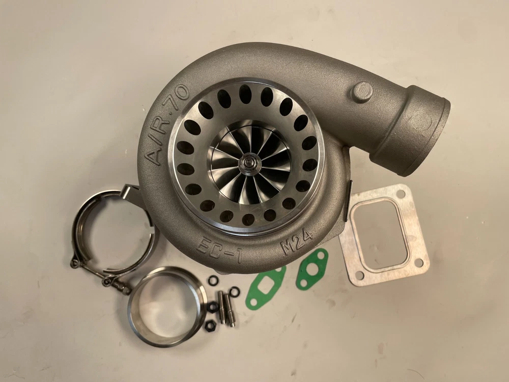 Turbo model T4R-22 Upgrade 11 billet compressor wheel bearing type:Single Ball Bearing cooled type:water and oil cooled Compressor details a/r 0.70 anti-surge air inlet 4" air outlet 2.5" inducer 61.40mm exducer 82.00mm Turbine details a/r .96 turbine housing flange:T4 Exhaust outlet:3.00 inch V-band inducer 74.10mm exducer 64.50mm ****************Very Important Points******************* 1.Please make sure to open the box immediately when taking delivery, to avoid any potential issues Do NOT sign for any damaged package and report it to the couriers immediately, let the couriers sign for damage, then Contact us please! We will work with the couriers to solve shipping issues.