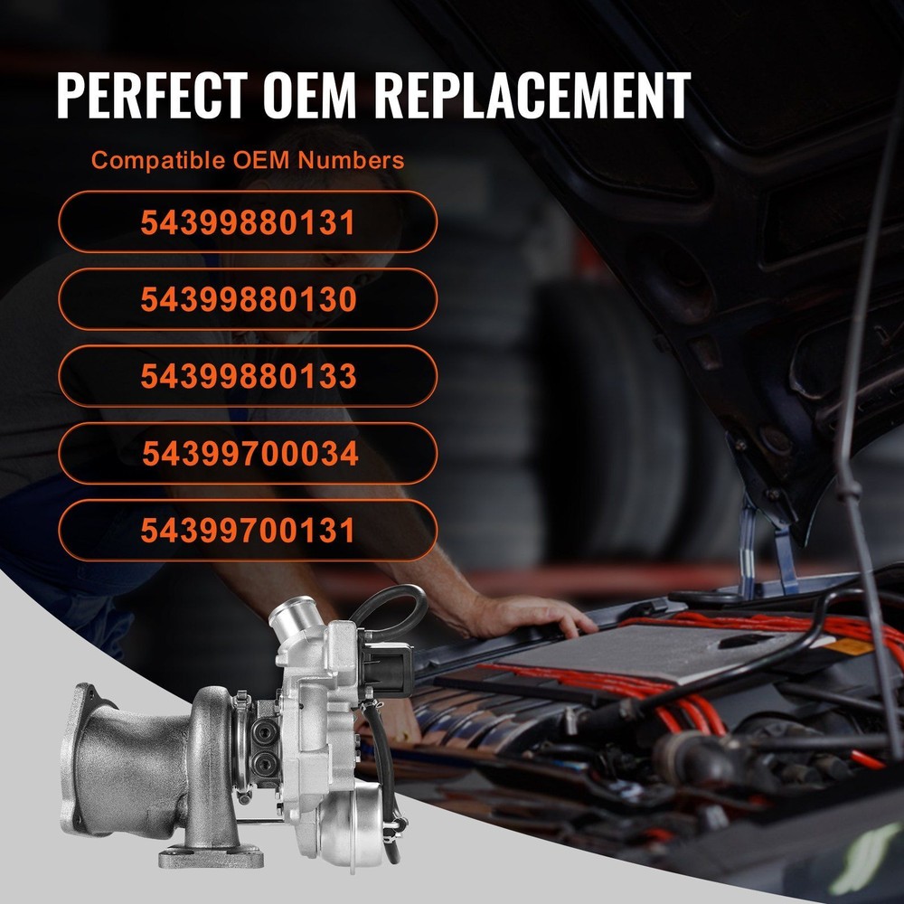 Original Quality, Restore Your Vehicle's Power This turbo turbocharger ensures perfect compatibility and installation with original parts, requiring no modifications. Note: Please lubricate the turbocharger and gaskets with oil before use. Professional installation is highly recommended. The turbo charger's impeller and compressor wheels undergo dynamic balance testing, significantly reducing wear and extending service life. This process minimizes vibrations and noise during operation, ensuring a smoother driving experience. The impeller is made from K418 nickel-based cast alloy, a high-temperature resistant material that maintains optimal performance even under sustained high temperatures, prolonging the engine turbocharger's lifespan. The safety valve of the turbocharger with gasket kit effectively prevents damage to the turbocharger and engine caused by excessive pressure, ensuring secure and stable operation during various driving conditions. The turbocharger housing is made from high-strength ductile iron, delivering excellent performance in high-temperature resistance, durability, and lifespan. The precisely engineered housing ensures proper sealing and avoids leaks.