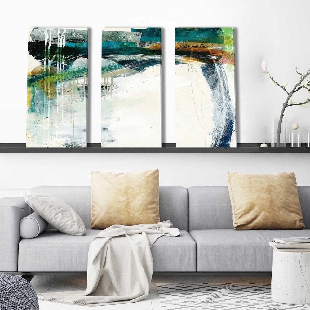This Digital Photo Print is created whereby an image is digitally printed directly onto premium canvas using a large format printer. The Artwork is then beautifully mirrored around the edges and professionally hand-wrapped around sustainable polystyrene solid stretcher bars. This artwork has been reproduced from the artists' original piece with written permission. This product will be custom built for you. Please allow 10 business days for the product to leave our warehouse.100% Proudly Made in North America & Arrives Ready-to-HangPlease note this is a digital print with no embellishmentsCare: Wipe with dry cloth onlySize Options:Option 1: Overall Size: 36" W x 24" H, Individual Panel Size: 12" W x 24" HOption 2: Overall Size: 48" W x 32" H, Individual Panel Size: 16" W x 32" H Free Shipping Over $49.99* Details "Turbulence IV" 3 Piece Set on Canvas Product Description: This Digital Photo Print is created whereby an image is digitally printed directly onto premium canvas using a large format printer. The Artwork is then beautifully mirrored around the edges and professionally hand-wrapped around sustainable polystyrene solid stretcher bars. This artwork has been reproduced from the artists' original piece with written permission. This product will be custom built for you. Please allow 10 business days for the product to leave our warehouse. 100% Proudly Made in North America & Arrives Ready-to-Hang Please note this is a digital print with no embellishments CareWipe with dry cloth only Size Options: Option 1: Overall Size36" W x 24" H, Individual Panel Size12" W x 24" H Option 2: Overall Size48" W x 32" H, Individual Panel Size16" W x 32" H