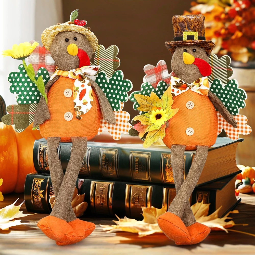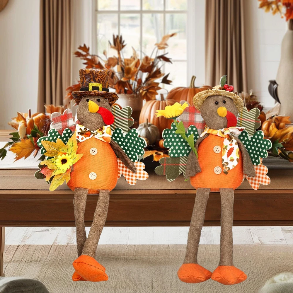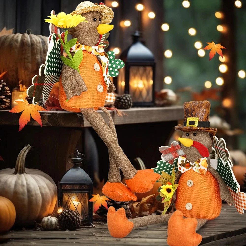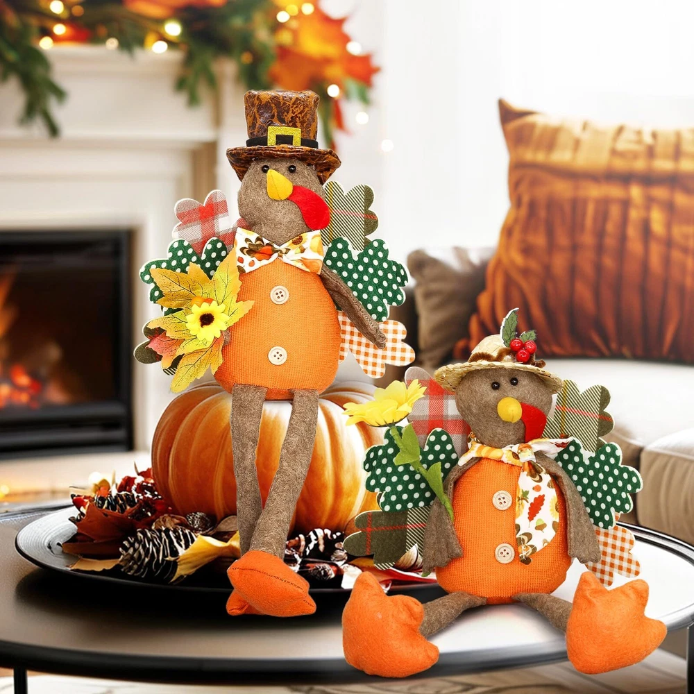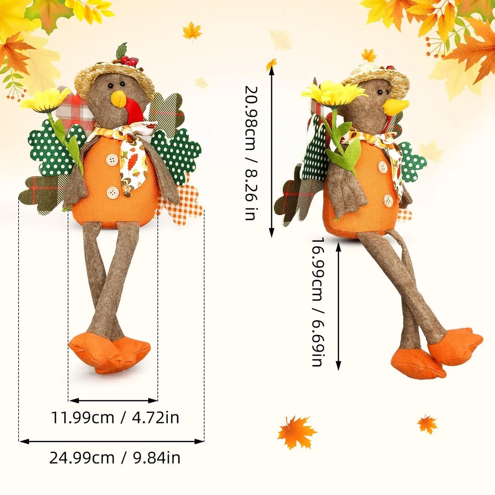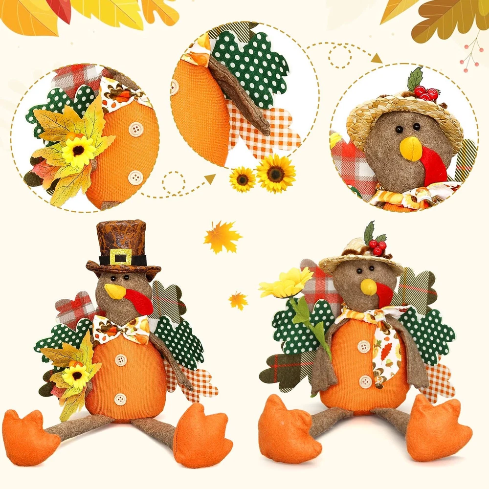 【Turkey Couple Thanksgiving Decoration】Autumn stuffed turkey couple doll is the essential decorations to Thanksgiving Day. Add sophistication to your home decor, Thanksgiving atmosphere. 【Premium Material Turkey Doll】Handmade turkey doll is made of high quality polyester and fiber, It is durable. Keep them up year-round to add a pop of color and soft texture in your home. Enjoy pumpkin spice season all year! 【Unique Design for Thanksgiving Decor】The Thanksgiving turkey decoration measures perfect size for any place. Adorn your home this holiday season with this turkey tabletop decor! Perfect for celebrating the Thanksgiving and harvest festival holiday season, our cute turkey decor looks great in your kitchen, dining room, living area,showcase, tabletop, desk decoration, or office area. 【Classic Fall and Autumn Colors】These fall decorations feature a classic turkey pilgrim with sunflower, maple leaves. Gather a group as a mantle decoration, create a table centerpiece, or spread them throughout your space. Happy Thanksgiving!