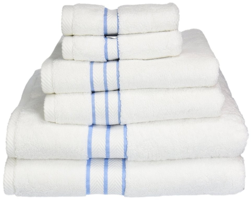 OPULENT COMFORT: Constructed of premium Long-Staple Combed Cotton, naturally strong, absorbent, and soft; OEKO-TEX Certified to ensure environmental and safety standards; set includes 2 hand towels, 2 face towels, and 2 bath towels WHIMSICAL DESIGN: State-of-the-art design is fashionable, elegant and classy; this set is available in white with a textured, border available in multiple colors; update the look of your master or guest bath with these elegant towels GORGEOUS STYLE and APPEALING COLORS: This set comes in white with an array of solid color border options; Black, Chocolate, Coral, Charcoal, Denim Blue, Forest Green, Latte, Light Blue, Navy Blue, Silver, Teal, Toast, Tea Rose, and Turquoise EFFORTLESS CARE: Colorfast and machine washable; avoid using fabric softeners and dryer sheets, as those products may decrease absorbency; tumble dry low and remove them promptly from dryer; always follow care label instructions for best results SATISFACTION GUARANTEE: Our products are backed by loyal guest service; our designs match a variety of styles and make great gifts; perfect for bridal, house-warming, or any holiday; update any room in your home, dorm, or apartment in an instant