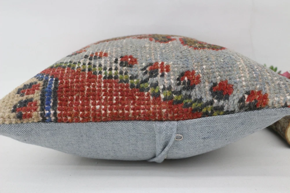 Turkish Kilim Pillow, Pillow, 14"x14" Red Cushion Cover, Kilim Pillow Cover