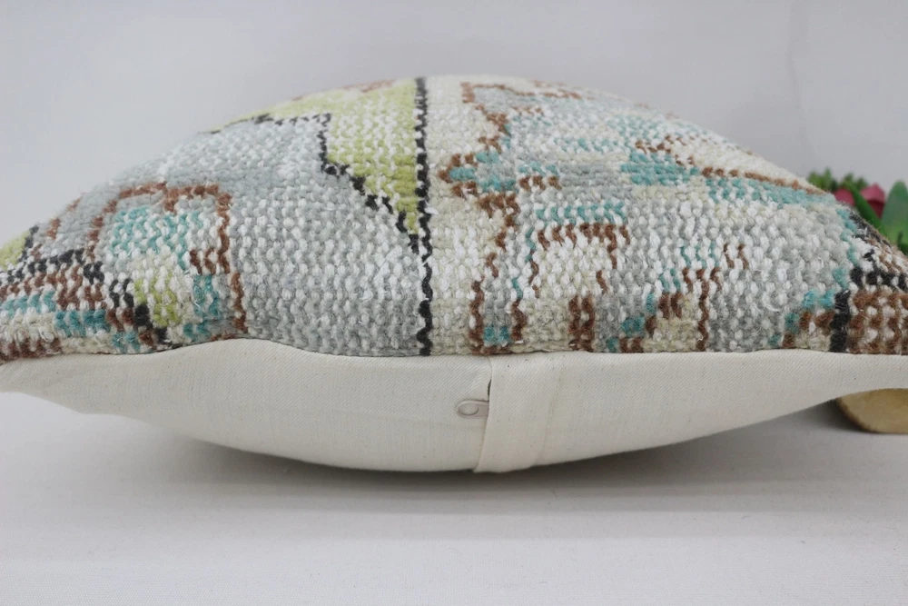 Kilim Pillow Details: All of my beautiful pillow covers or cushion cases are designed and made by me. I am making my throw pillow covers from handmade vintage rugs, Turkish rugs. Therefore, each of my vintage kilim pillowcase is one of kind. These cushions covers are piece of an art. The size of this pillow is 14 x 14 inches or 35 x 35 cm. The front side of this decorative pillow cover, cushion cover is wool on wool vintage kilim rug. The backside of this throw is high quality cotton fabric with a high quality zipper. This listing has 2 option for this handmade pillow. You can choose with insert or without insert. The listing photos is with insert in the pillowcase which is just for demonstration purpose. All of my vintage Turkish rugs have been professionally washed before I cut them as pillow case or cushion case so these kilim covers are 100 posent clean and ready to use. Due to the age and handmade nature of these vintage rugs, there might be imperfections and flaws that are not considered defects. This is a piece of a handmade vintage rug with minor signs of wear consistent with age and use that give it an antique look. You can see the condition of the rug pillow clearly in the detailed photos. I am going to ship your order of decorative pillow as soon as possible. I usually ship in the next day with DHL Express or FedEx which will deliver the kilim pillow, cushion cover just in 3-5 business days. It is my responsible until you receive pillow cover or pillow cover with insert at your door. If the pillow cover or insert get lost or damage during the shipping, I will ship the new kilim pillow cover or pillow insert for free as soon as possible. I take photos of my throw pillows indoor with professional camera which shows the real colors. The photos of these Turkish pillow covers are not altered. Keep in mind the colors of the rug vary slightly in different lights. Please contact to me for additional photos. I take the photos of my vintage rugs outside with daylight to show you the real and natural colors. My photos are not altered. Keep in mind the colors of the rug vary slightly in different lights. Please contact to me for additional photos. SATISFACTION GUARANTEED for your order in my shop. Your SATISFACTION is the most important to me. Please write me if you have any question or if you don't like anything from my pillow covers, cushion covers. If any reason, you are not happy from your Turkish pillow cover, I accept return without any hassle. Please read my shop policies for details. This cushion case or pillow cover can be used as decorative throw pillow, gift pillow, Christmas pillow case, bedding pillow, lumbar pillow, sofa pillow, bohemian pillow, boho pillow. You can find in any kind of Turkish kilim pillow cover in different design such as striped pillow, embroidered pillow, and geometric pillow.