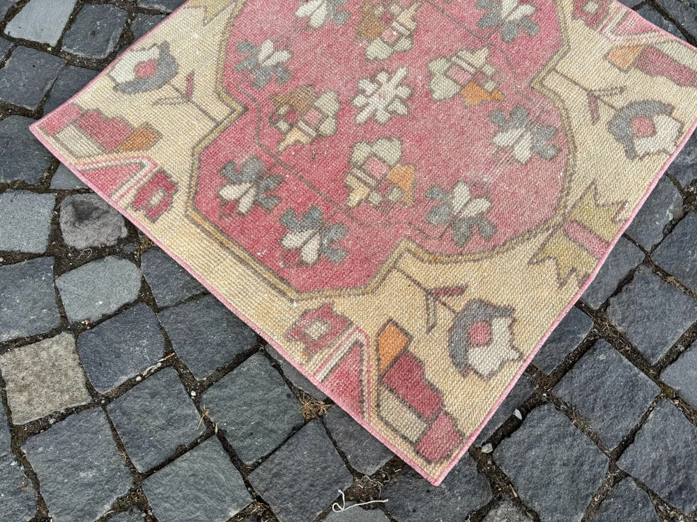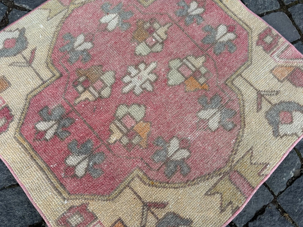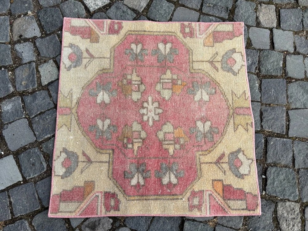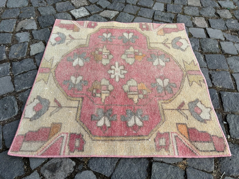 An old (approximately 45-60 years old) hand knotted / hand woven Turkish rug from the Middle Anatolian Region and made of genuine, high quality wool, in natural colors. Our distinguished Antiques and Vintage rugs, each with its own unique story, have been carefully selected from every corner of Turkey. RUG DETAILS * One-of-a-kind vintage rug * Dimensions: 2,5 x 2,5 ft = 31 x 31 inc = 79 x 79 cm * Low pile: approximately 0.2"(0.5 cm) * Dyed with natural dyes * Product code : AA 1305 SHIPPING * Free shipping on all items. * Usually shipped via FedEx or UPS. * Item will be ready for shipment within * Estimated delivery 3-5 business days 1-3 business days with a tracking number. All of our rugs have been professionally cleaned and ready to ship before being listed. These unique vintage rugs have normal wear related to their age. We believe this adds to the authenticity of these hand-woven beauties. We inspect all rugs carefully before Shipping, but in the unlikely event that due to our fault, the goods are not fit for purpose, damaged/defective, or we ship the wrong item, we will issue a 100% refund. We are a team of experienced professionals who are dedicated to ensuring your items arrive safely. Please note that our photos accurately represent the colors of the rug, however it may look different in the light in your home or against different colored floors. We are so excited to share the beauty and art of rugs with you and to see how your personal spaces transform! I do my best to build a great experience in online rug shopping for you, just look at the reviews. Please feel free to write me over conversation if you have any questions about the rug or price. I will be happy to answer to you. Thank you, Yusuf.