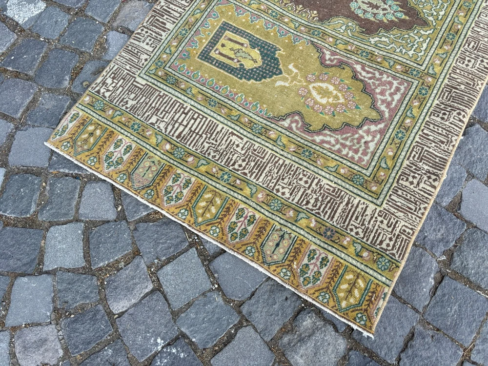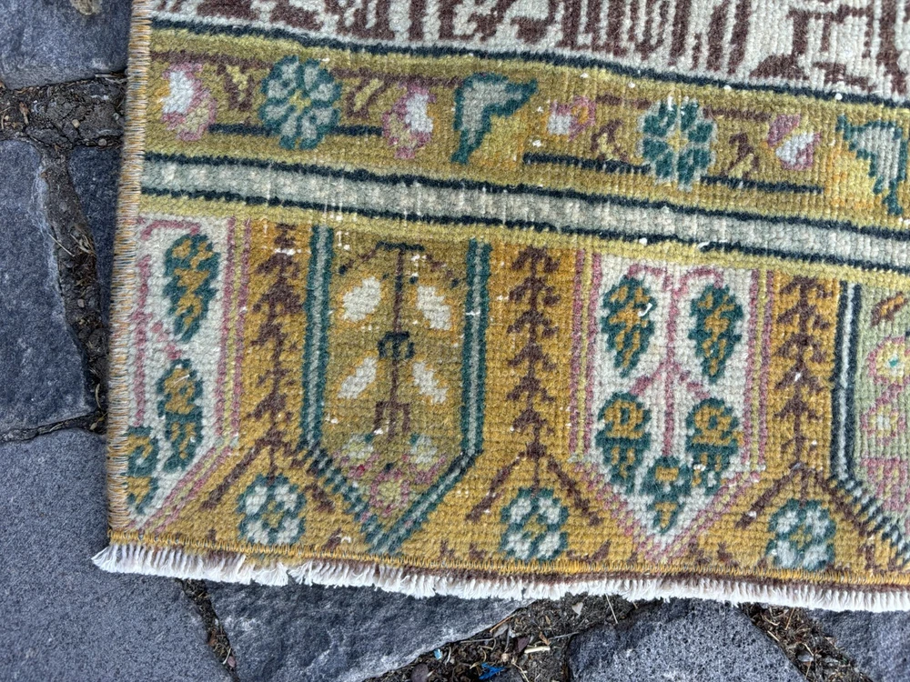 An old (approximately 45-60 years old) hand knotted / hand woven Turkish rug from the Middle Anatolian Region and made of genuine, high quality wool, in natural colors. Our distinguished Antiques and Vintage rugs, each with its own unique story, have been carefully selected from every corner of Turkey. RUG DETAILS * One-of-a-kind vintage rug * Dimensions: 2,8 x 9,3 ft = 34 x 113 inc = 87 x 286 cm * Low pile: approximately 0.2"(0.5 cm) * Dyed with natural dyes * Product code : RR 1699 SHIPPING * Free shipping on all items. * Usually shipped via FedEx or UPS. * Item will be ready for shipment within * Estimated delivery 3-5 business days 1-3 business days with a tracking number. All of our rugs have been professionally cleaned and ready to ship before being listed. These unique vintage rugs have normal wear related to their age. We believe this adds to the authenticity of these hand-woven beauties. We inspect all rugs carefully before Shipping, but in the unlikely event that due to our fault, the goods are not fit for purpose, damaged/defective, or we ship the wrong item, we will issue a 100% refund. We are a team of experienced professionals who are dedicated to ensuring your items arrive safely. Please note that our photos accurately represent the colors of the rug, however it may look different in the light in your home or against different colored floors. We are so excited to share the beauty and art of rugs with you and to see how your personal spaces transform! I do my best to build a great experience in online rug shopping for you, just look at the reviews. Please feel free to write me over conversation if you have any questions about the rug or price. I will be happy to answer to you. Thank you, Yusuf.