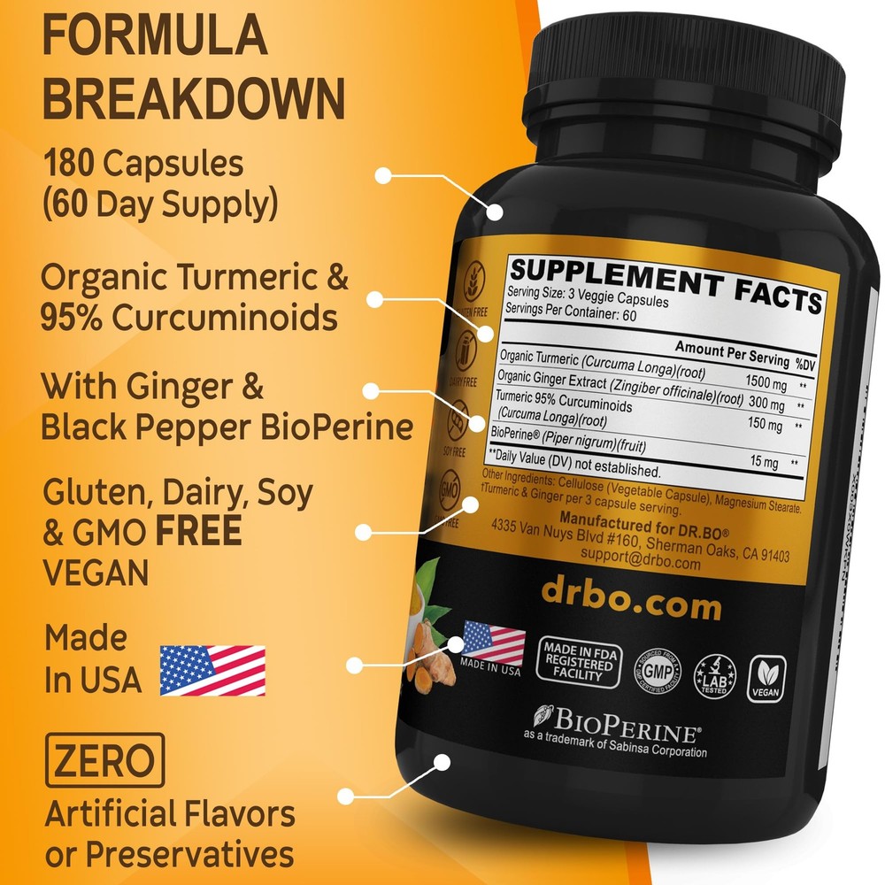 Want knee health & dynamic immune vitamins nutrition knees support plus flexibility & knee support nutrition & organic turmeric supplements? Try ultra pure turmeric with bioperine support complex for adults & kids. Organic herbal curcuma capsules formula made from nature with no gmo, pure tumeric and ginger herb for golden turmeric root key wellness. Extra strength turmeric and ginger supplement for advanced knee support. Premium T3 organic turmeric supplement ginger complex 1950mg with 95% standardized curcuminoids & 15mg BioPerine black pepper & max absorption. Turmeric BioPerine ginger for max absorption. BioPerine a patented black pepper helps up to 2000x better absorption than pure turmeric capsules. Ginger Tumeric and Curcumin for knee health. Add turmeric and ginger supplement with black pepper BioPerine rather than just tumeric and curcumin supplements alone for extra strength knee health support. Organic knee support for men women adults & kids. Turmeric Curcumin with black pepper is a organic knee turmeric ginger supplements super antioxidant. Support with turmeric powder with curcuma longa. Men & women turmeric and ginger supplement. Organic turmeric capsules for the best quality ginger turmeric supplement. 1950mg per 2 capsule serving organic turmeric curcumin with BioPerine supplement ginger capsules. Vegetarian Tumeric and Ginger supplements with BioPerine black pepper extract ginger turmeric supplement for extra strength knee support. High potency turmeric curcumin with bioperine and ginger root capsules. Vegan Organic Tumeric and Curcumin supplements use the best quality tumeric and ginger supplement. High grade turmeric pills the most potent turmeric curcumin with black pepper bioperine. 60 120 180 240 500 mg 500mg 750mg 900 1000 1000mg 1500mg 2000mg 2600 2600mg piperine organica circumin tuneric suplement cumin tumetic tablets caps cucumin turmic tumric supreme tumerick Extra Strength Turmeric and Ginger Supplement: Premium T3 organic turmeric supplement ginger complex 1950mg with 95% standardized curcuminoids & 15mg BioPerine black pepper & max absorption BioPerine & Ginger for Max Absorption: BioPerine, a patented black pepper, helps up to 2000x better absorption than just pure turmeric capsules; ginger tumeric and curcumin for knee health Knee Support: Turmeric Curcumin with black pepper is an organic knee supplements super antioxidant; turmeric powder with curcuma longa; men & women turmeric and ginger supplement Organic Turmeric Capsules: 1950mg Organic Turmeric Curcumin with BioPerine supplement ginger capsules; tumeric and ginger supplements with BioPerine black pepper ginger turmeric supplement High Potency: Vegan Organic Tumeric and Curcumin supplements use the best quality tumeric and ginger; high grade turmeric pills, the most potent turmeric curcumin with black pepper bioperine