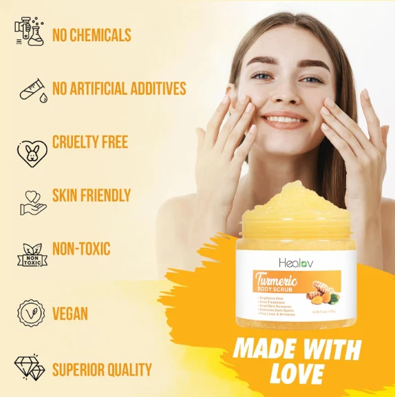 Turmeric Face Cream for Face & Body - All Natural Turmeric Skin Brightening L... US Warehouse - FREE & FAST Shipping in US Product Description: These statements have not been evaluated by the FDA. This product is not intended to diagnose, treat, cure, or prevent any disease or health condition. Revitalize with Turmeric Face Scrub & Body Exfoliant: Elevate your daily routine with our dual-action formula, serving as a rejuvenating turmeric face scrub and a deep-cleansing turmeric body scrub. Experience cleansing, soothing, and conditioning for reduced redness and itchiness. Illuminate Your Skin's Radiance: Immerse yourself in the transformative power of our turmeric scrub for spots. Crafted with pure turmeric powder, this skin brightening scrub helps spots and scars, unveiling a younger-looking glow for naturally pigmented and brighter skin. Turmeric Scrub for Refined Pores: Delve into a skin-purifying experience with our turmeric body scrub that acts like a magnet, drawing impurities from deep within pores. This exfoliating body scrub prevents dirt buildup, shrinks pores, and provides an evenly refined finish. Hydrating Turmeric Face & Body Mask: Indulge in the versatility of our turmeric face exfoliating scrub, suitable for all skin types. This skin brightening face and body mask nourishes dry, damaged, aging, stressed, uneven, and acne-prone skin, leaving you with a revitalized complexion. Pure Turmeric Bliss in Every Scrub: Imbibe the goodness of our turmeric scrub, crafted from the purest ingredients. This all-natural turmeric face scrub is not only 100% Phthalate-free but also free from additives, synthetics, or artificial fragrances, ensuring a wholesome and refreshing skincare experience. Feedback: 1.Any question for your order, please contact us in time, we will reply to you within 24 hours and give you a satisfactory answer. 2.If you are satisfied with our products and services, hope to take up your a little precious time to leave feedback reviews for our products.Thanks! 3.Your satisfaction is our effort. Welcome to order again! Have a great day! Our Policy: 100% Satisfaction Guarantee 20% of restocking fee will be charged for return item