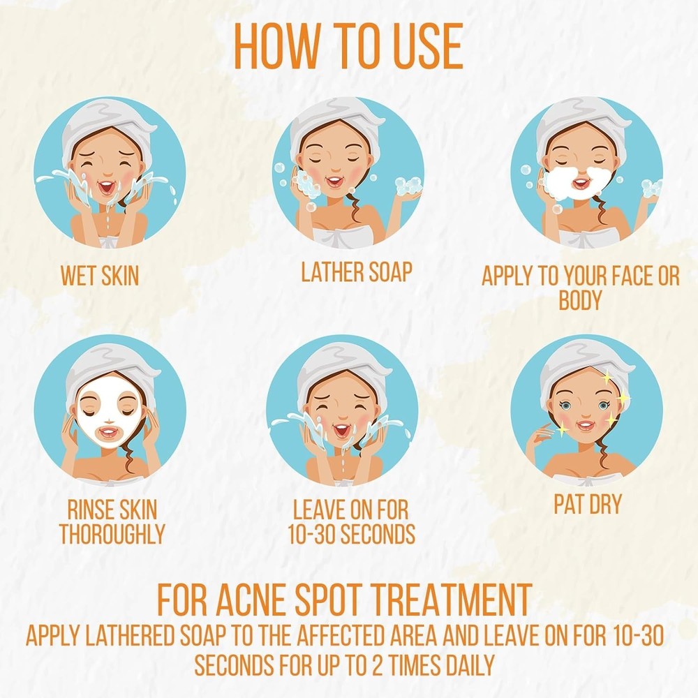 BRIGHTENING TURMERIC SOAP BAR: Enriched with turmeric powder, this natural turmeric soap bar profoundly cleanses skin of impurities but gradually fades the appearance of scars, spots & sun damage so that it glows brightly. HYDRATING & NON-DRYING: Unlike other turmeric cleansing soaps, this skin brightening turmeric cleanser contains ingredients such as olive oil, coconut oil & shea butter to replenish moisture & lock in hydration. DOUBLES AS SPOT CORRECTOR: Leave the lather on the skin for a few minutes to use the skin brightening soap as a turmeric mask for hyperpigmentation, age spots, or dark spots. Use to wash from head to toe or to treat scars. TURMERIC FACE & BODY WASH: Use the raw turmeric soap as a turmeric face wash or skin brightening body wash. Considered the best dual-action turmeric soap bar for the face & body, it can be used for bathing & showering. HANDMADE IN THE USA: Handcrafted from the purest ingredients available, the all-natural bar soap is as pure as they come. They are proudly made in the USA. 100% phthalate-free. No additives, synthetics, or artificial fragrances.