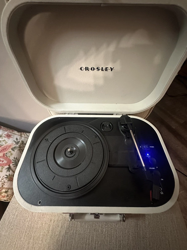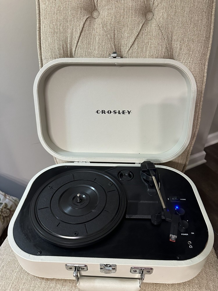 Missing one of the foot peg as shown in picture ( can remove rest for stability or find a peg similar in size). Great condition otherwise and works great. The Crosley CR8009B-DU Discovery Turntable Record Player is a stylish and versatile 2nd generation turntable that features Bluetooth connectivity for added convenience. With a sleek dune color design and a compact size of 10.63" in length, this turntable is perfect for smaller spaces. It includes audio outputs for a headphone jack and stereo RCA, as well as speed settings for 45RPM, 33.3RPM, and 78RPM. The belt drive feature ensures smooth and precise playback of your favorite vinyl records, making it a great addition to any home audio setup.