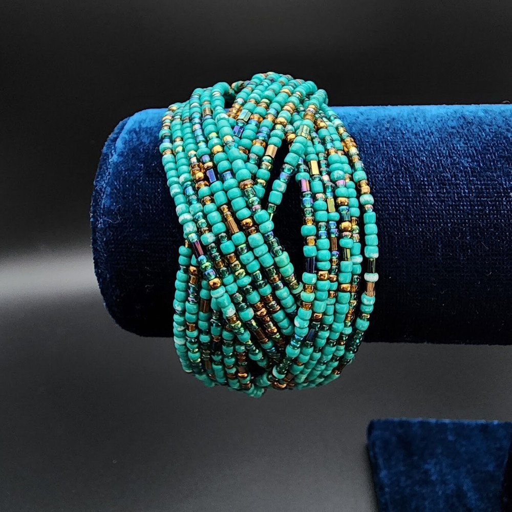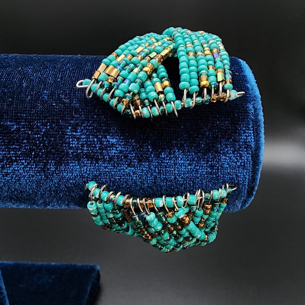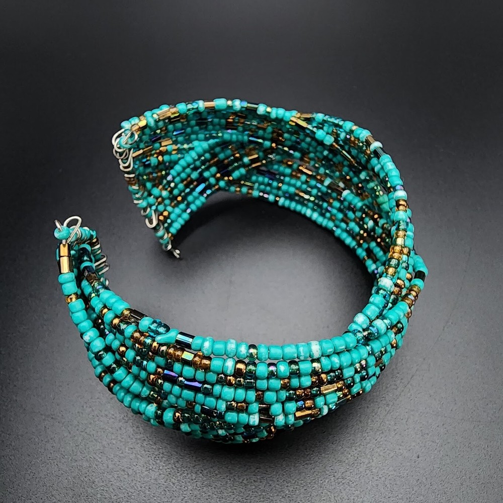 Country of Origin:UnknownStyle:Beaded, CuffItem Length:7.5 inType:BraceletCharm Type:BeadMaterial:Glass BeadsTheme:Beach, Beaded, BohemianColor:TurquoiseSetting Style:.Modified Item:NoMain Stone Color:BronzeMetal:UnknownSeller Notes:“Great Condition. See pics for details.”Cut Grade:.Brand:HandmadeMain Stone Creation:UnknownCountry/Region of Manufacture:UnknownClasp Type:CuffVintage:YesSecondary Stone:No StoneHandmade:YesMain Stone:Not ApplicableNumber of Gemstones:0Main Stone Treatment:UnknownClosure:.Chain Type:Wire