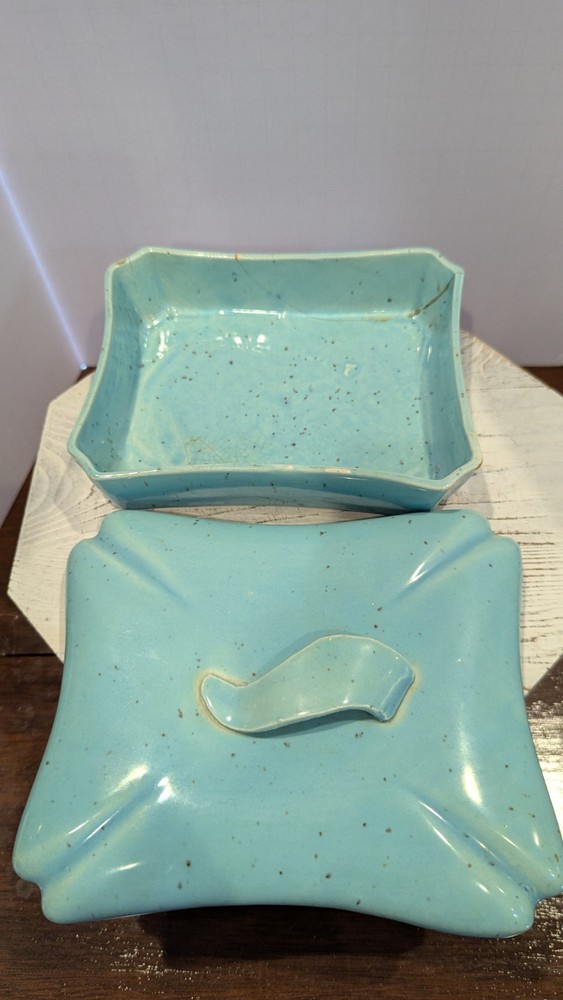 Brand:UnbrandedSize:MediumSuitable For:FurnitureType:Trinket BoxRoom:Any RoomMaterial:CeramicShape:RectangleCare Instructions:Clean with Damp ClothTime Period Manufactured:1950-1959Engraved:NoCustomized:NoSeller Notes:“crack on inside, pictured”Original/Reproduction:OriginalColor:Blue