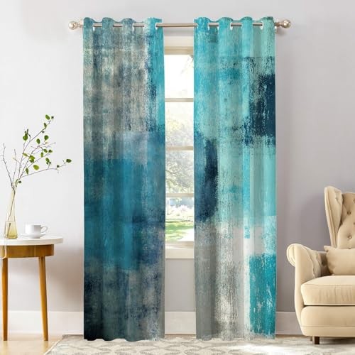 Absolutely love these curtains! The turquoise and green abstract pattern adds such a vibrant, modern touch to my living room. They block light perfectly and feel so soft. Installation was a breeze with the grommets, and they arrived super fast. Highly recommend!