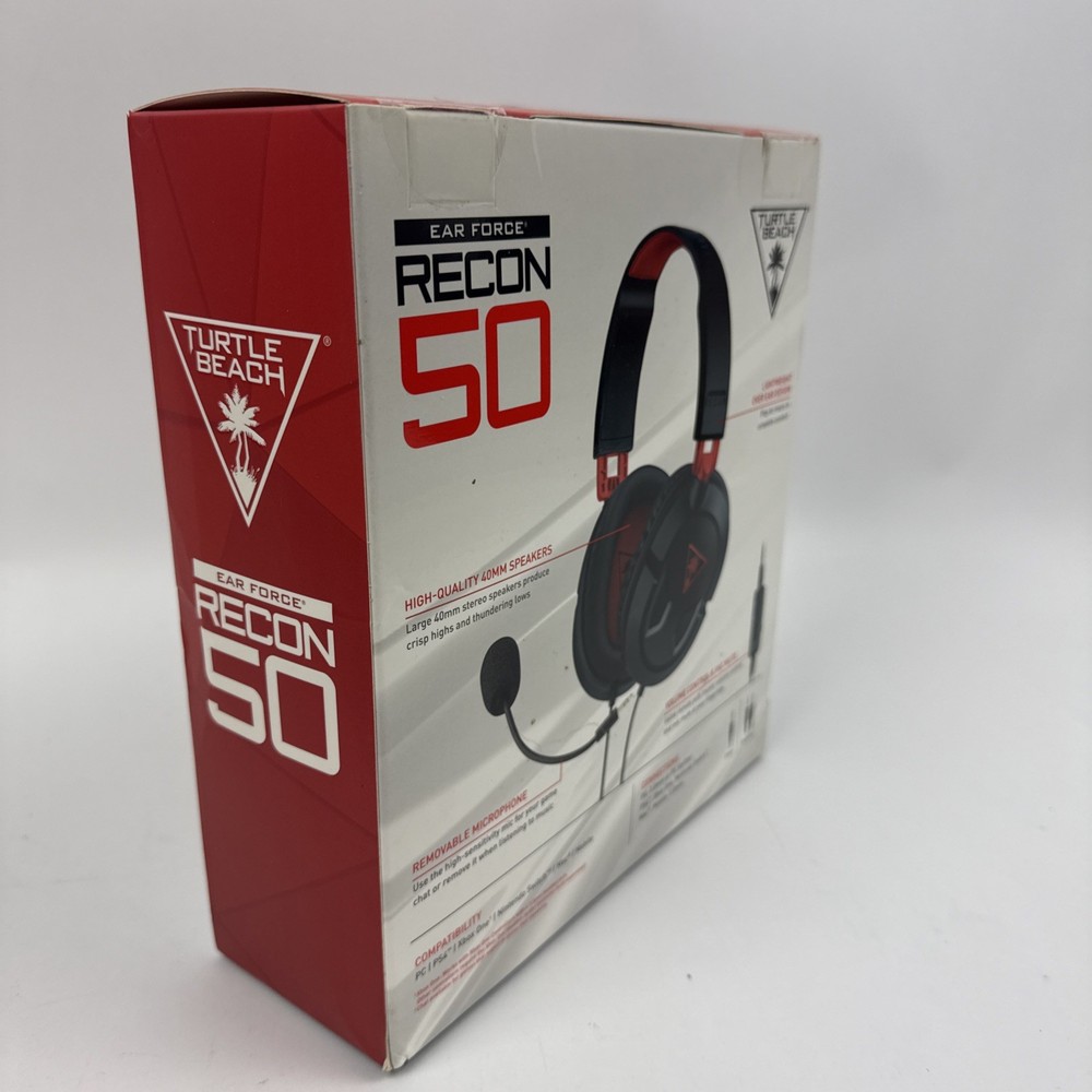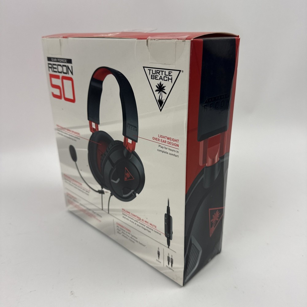 The Turtle Beach Recon 50 Headset is a black and red wired gaming headset designed for use with PCs, Switch consoles, and PS4s. It features a comfortable headband design with ear-cup style earpieces, double earpieces for immersive gaming experiences, and a boom microphone for clear communication. The headset also includes a microphone mute button and volume control for convenient adjustments during gameplay. With a 3.5mm jack connectivity and Bluetooth wireless technology, this headset offers both versatility and functionality for serious gamers.