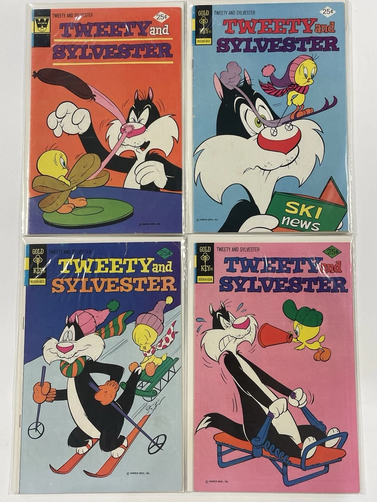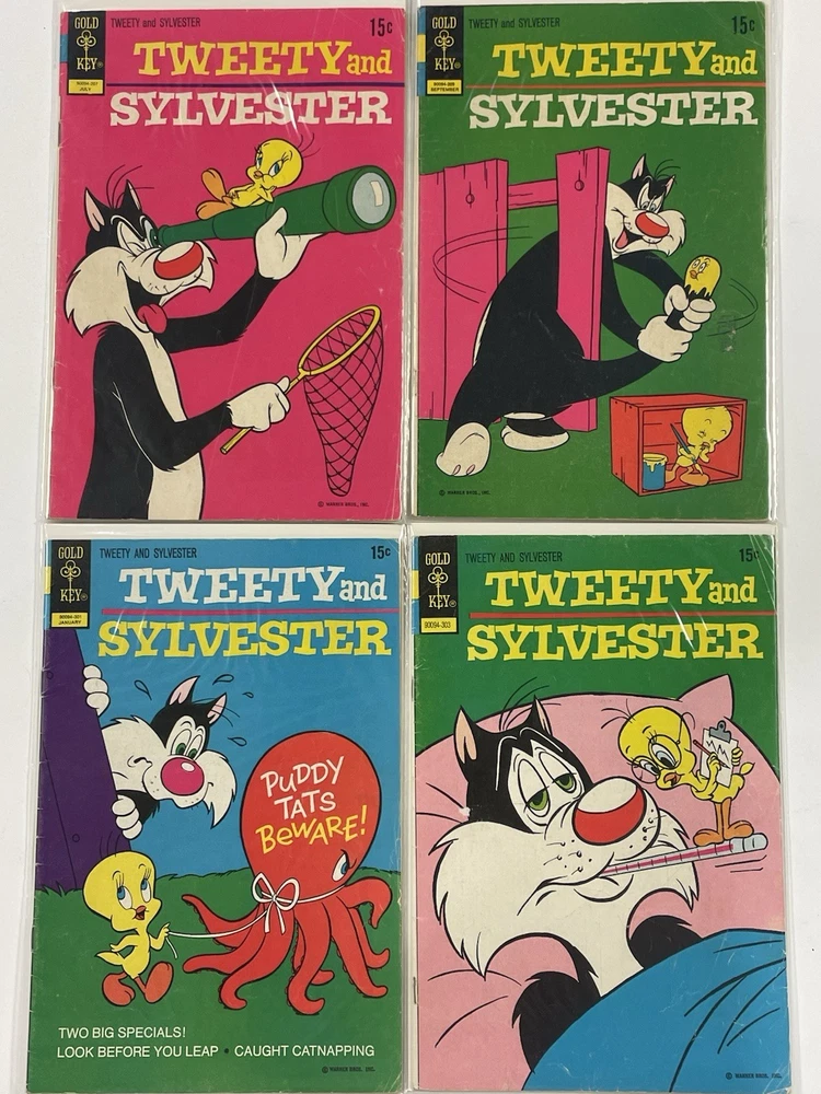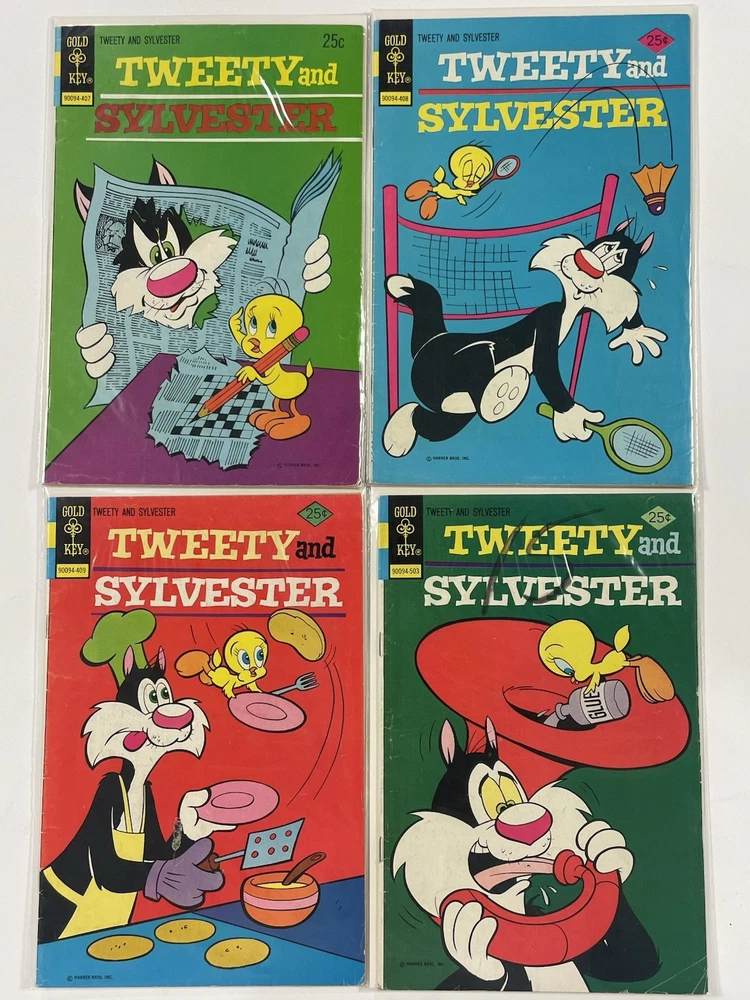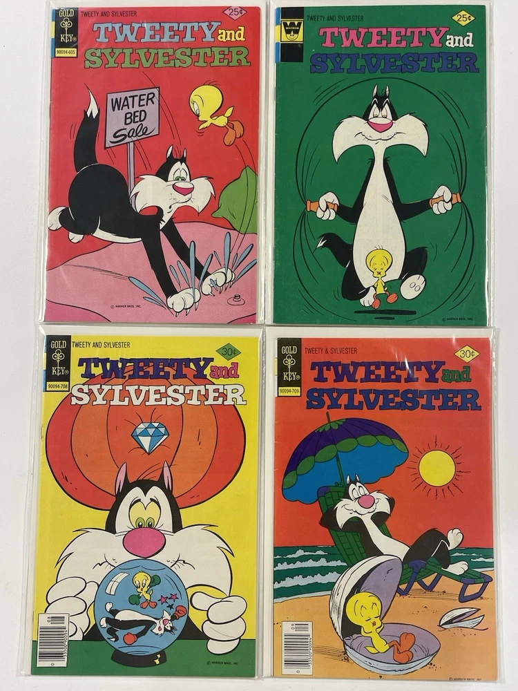 Laughs with Tweety and Sylvester. From 1968-1977 List of issues and conditions below: #8 - G/VG or 3.0 #17 - G- or 1.8 #23 - G+ or 2.5 #25 - G or 2.0 #26 - G+ or 2.5 #28 - G+ or 2.5 #29 - G or 2.0 #30 - G+ or 2.5 #34 - Fair or 1.0 #36 - G or 2.0 #37 - VG or 4.0 #38 - VG or 4.0 #39 - VG+ or 4.5 #40 - VG or 4.0 #43 - G or 2.0 #44 - VG or 4.0 #46 - G+ or 2.5 #47 - VG/F or 5.0 #51 - VG or 4.0 #52 - VG or 4.0 - Whitman Variant #53 - G+ or 2.5 #55 - G or 2.0 #56 - F- or 5.5 #57 - VG+ or 4.5 #58 - VG or 4.0 - Whitman Variant #72 - F or 6.0 #73 - VG/F or 5.0