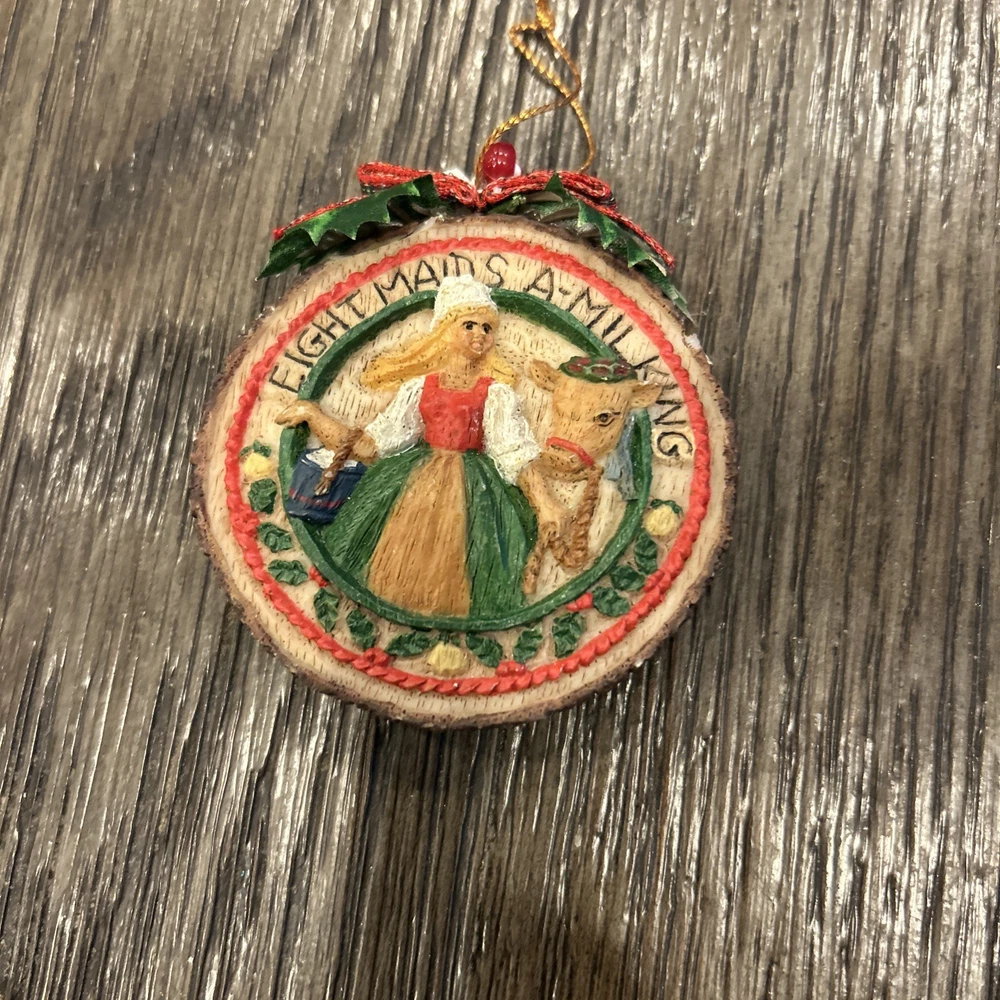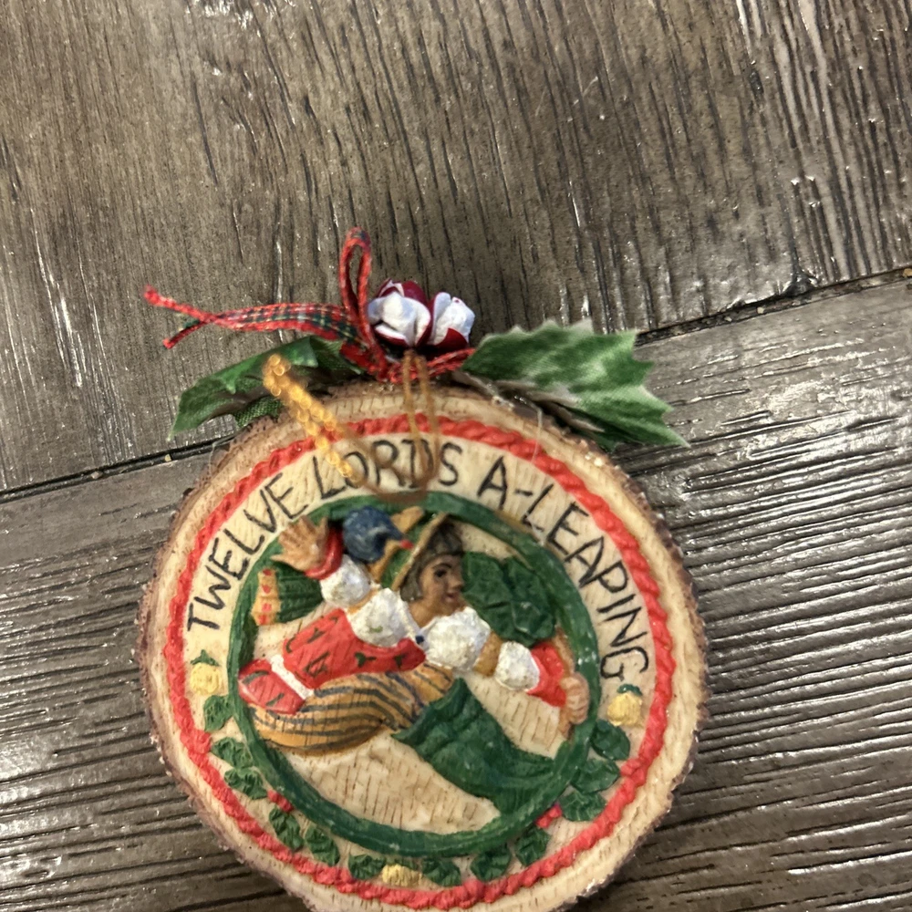 Set of 10 from the Twelve Days of Christmas. Preowned and have flaws. These ornaments are delicate and chip easily. Shown in photos. Six and Seventh Day is missing. Two Turtle Doves has a small piece missing.