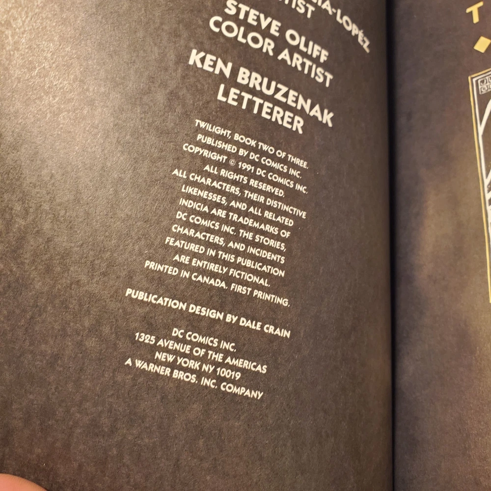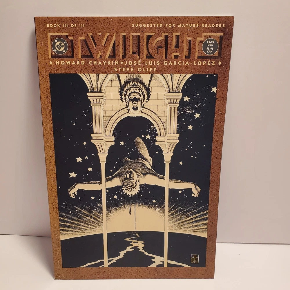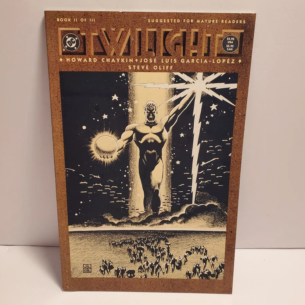Publisher:DC ComicsEra:Modern Age (1992-Now)Style:ColorCountry of Origin:United StatesPublication Year:2015Issue Number:1Character:Rick Purvis (death), Rheingold (first appearance), Jon Starker (first name changed from John to Jon), Tommy Tomorrow (as a god possessing Karel's essence, death), Francis, Karel Sorensen (ascends to godhood), Godfrey (mentioned only), Brent Wood (death), Homer Glint (also in framing sequences), Broome (in flashback, death), Suckle, Ilda, Lord Feric Ironwolf (first appearance), Monteleon (Brujo Rojo's owner), Holly "Hummer" Keeton (in a museum display), Brenda Tomorrow (first appearance, ex-wife of Tommy Tomorrow, also in flashback), Dr. Robert (mentioned only), Fenton, Brenda Tomorrow, Axel Starker, Star Hawkins (revealed as John Starker's brother), John Starker (formerly Manhunter 2070, also in flashback, first named changed to Jon in the next issue), Tommy Tomorrow, Star Hawkins, F'tatateeta (also in framing sequences), Jon Starker (merges with Ilda, death), Kapek (death), Tommy Tomorrow (absorbs Karel's essence, becoming a god), F'tatatita (in framing sequences only, first appearance, spelling changed to F'tatateeta in the next issue), Jaki, Brujo Rojo (a fighting cock), Valentine, Brent Wood (quits), Space Cabby, Iron-Storm (a fighting cock), Deutsch (first appearance), Ilda (merges with Jon Starker, death), Gonif (cock-fight bookie), Karel Sorensen (as a goddess, apparent death), Commodore Tommy Tomorrow (also in flashback), Allardyce (first appearance), Fox (in flashback, death), Bruno (a.k.a. Jocko, death), Roemer (first appearance, joins), Karel Sorensen (as her sentient essence within Tommy Tomorrow), Homer Glint (also in framing sequences and in flashback), F'tatateeta (also in framing sequences, spelling changed from previous issue), Brent Wood (first shown as a member of the Knights), Imhof (mentioned only)Unit of Sale:Single UnitCover Artist:José Luis García-LópezLanguage:EnglishSeries Title:TwilightFormat:Mixed LotArtist/Writer:José Luis García-López, Steve Oliff, Howard ChaykinUniverse:DC UniverseTradition:US ComicsType:Comic BookGenre:Science FictionIntended Audience:General AudienceFeatures:First Printing