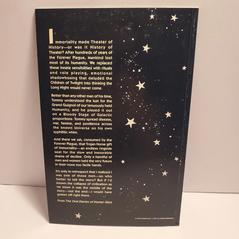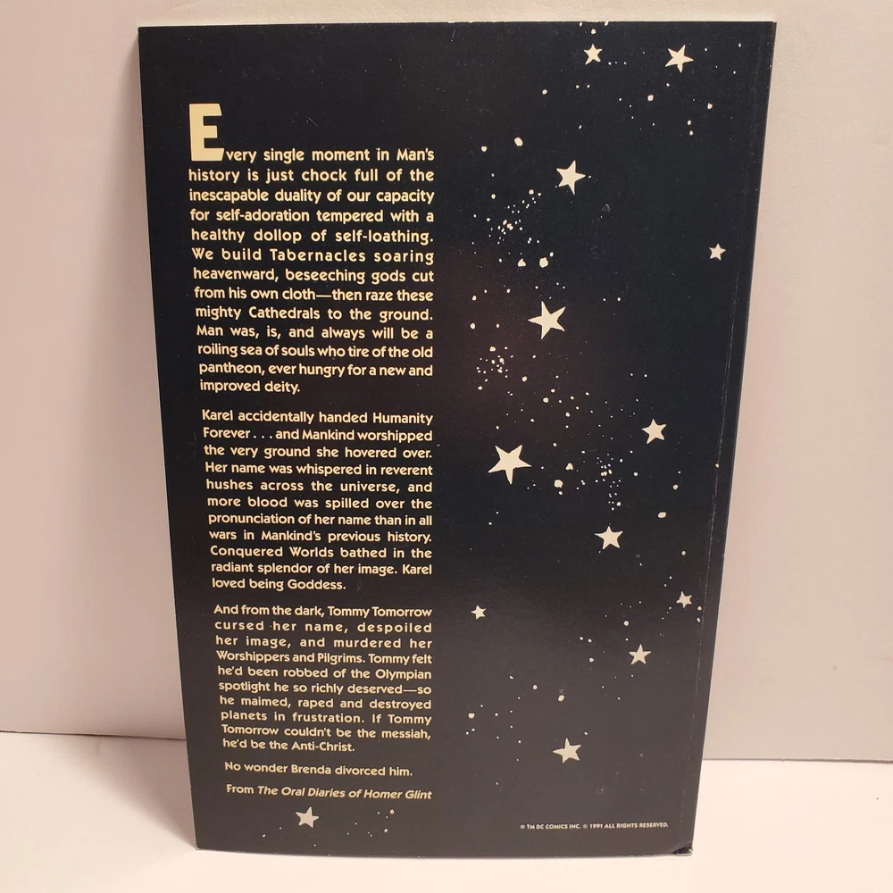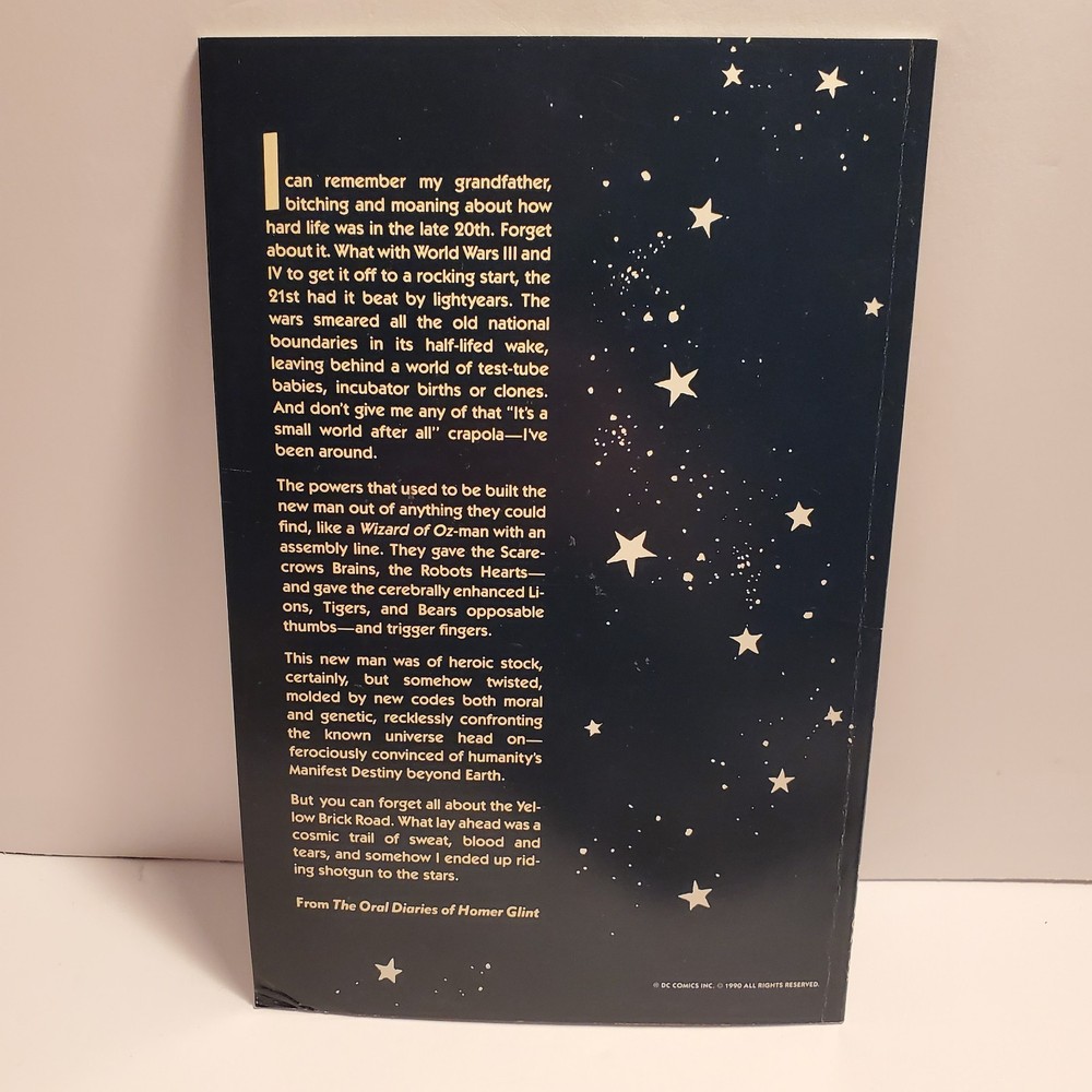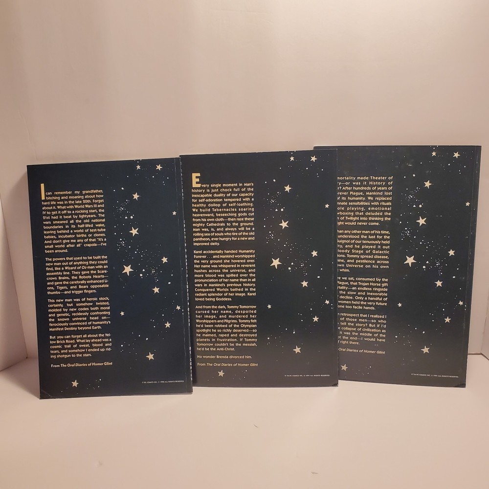 Publisher:DC ComicsEra:Modern Age (1992-Now)Style:ColorCountry of Origin:United StatesPublication Year:2015Issue Number:1Character:Rick Purvis (death), Rheingold (first appearance), Jon Starker (first name changed from John to Jon), Tommy Tomorrow (as a god possessing Karel's essence, death), Francis, Karel Sorensen (ascends to godhood), Godfrey (mentioned only), Brent Wood (death), Homer Glint (also in framing sequences), Broome (in flashback, death), Suckle, Ilda, Lord Feric Ironwolf (first appearance), Monteleon (Brujo Rojo's owner), Holly "Hummer" Keeton (in a museum display), Brenda Tomorrow (first appearance, ex-wife of Tommy Tomorrow, also in flashback), Dr. Robert (mentioned only), Fenton, Brenda Tomorrow, Axel Starker, Star Hawkins (revealed as John Starker's brother), John Starker (formerly Manhunter 2070, also in flashback, first named changed to Jon in the next issue), Tommy Tomorrow, Star Hawkins, F'tatateeta (also in framing sequences), Jon Starker (merges with Ilda, death), Kapek (death), Tommy Tomorrow (absorbs Karel's essence, becoming a god), F'tatatita (in framing sequences only, first appearance, spelling changed to F'tatateeta in the next issue), Jaki, Brujo Rojo (a fighting cock), Valentine, Brent Wood (quits), Space Cabby, Iron-Storm (a fighting cock), Deutsch (first appearance), Ilda (merges with Jon Starker, death), Gonif (cock-fight bookie), Karel Sorensen (as a goddess, apparent death), Commodore Tommy Tomorrow (also in flashback), Allardyce (first appearance), Fox (in flashback, death), Bruno (a.k.a. Jocko, death), Roemer (first appearance, joins), Karel Sorensen (as her sentient essence within Tommy Tomorrow), Homer Glint (also in framing sequences and in flashback), F'tatateeta (also in framing sequences, spelling changed from previous issue), Brent Wood (first shown as a member of the Knights), Imhof (mentioned only)Unit of Sale:Single UnitCover Artist:José Luis García-LópezLanguage:EnglishSeries Title:TwilightFormat:Mixed LotArtist/Writer:José Luis García-López, Steve Oliff, Howard ChaykinUniverse:DC UniverseTradition:US ComicsType:Comic BookGenre:Science FictionIntended Audience:General AudienceFeatures:First Printing