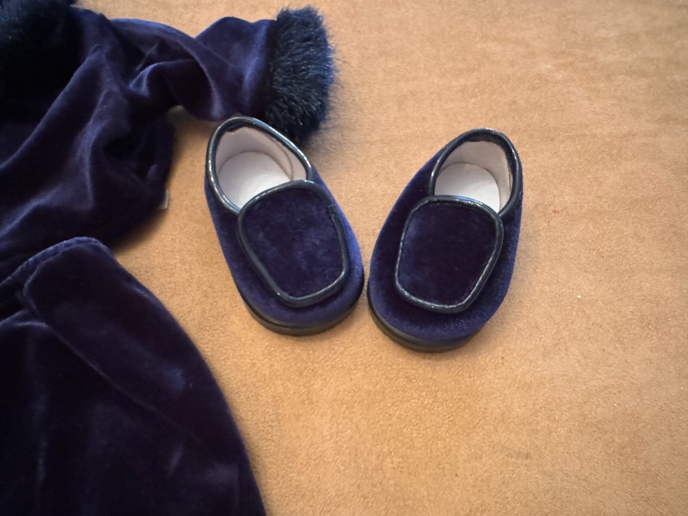 Twilight Outfit Your American Girl is dressed to dazzle in a velour jacket and skirt with furry trim. Add her matching velour shoes , and she’ll look perfect for any festive occasion! Check out my other American Girl, book and toy listings. I sell a variety of new and vintage items. Browse by see other items , or at my store Songbird’s treasure. Add me as a favorite seller or store. I am constantly adding new items. Smoke free, pet free home! BUY WITH CONFIDENCE! Same user I.D. since 2003. I strive to provide quality items and excellent customer service. Thanks for looking and come back again!