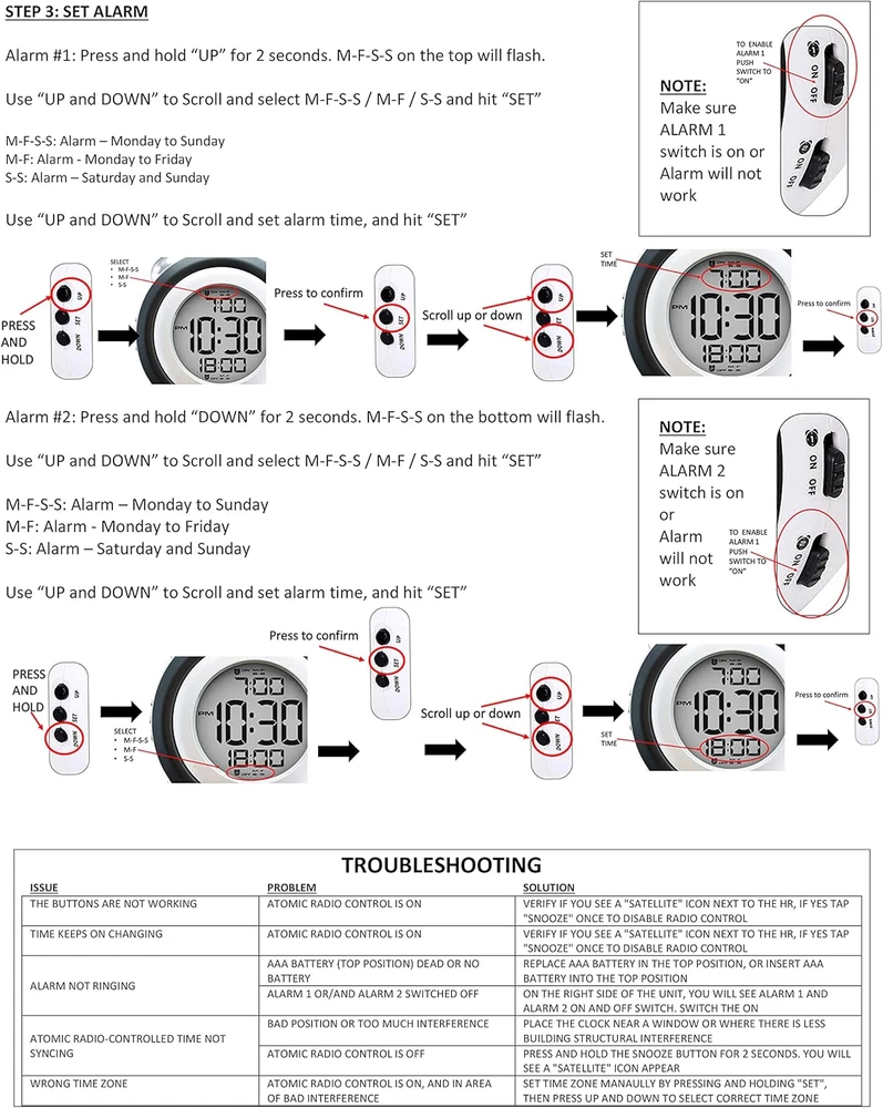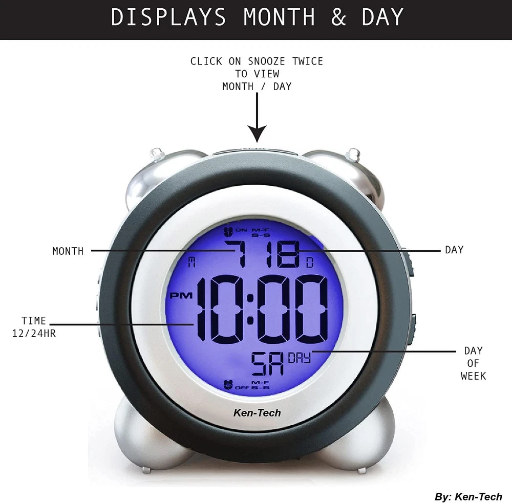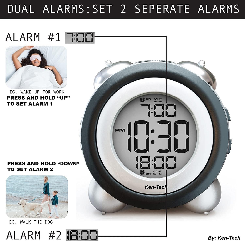 Store New Arrivals Add to Favorite View Feedback Contact Twin Bell Digital Alarm Clock - Very Loud Alarm Clock for Heavy Sleepers and the Hearing Impaired. Battery Operated Dual Alarm Blue Backlight. for Teens and Senior Citizens by Ken-Tech - White (-T-4689) Description Item model number -T-4689 Style Classic Number of Items 1 Power Source Battery Powered Country of Origin China Operation Mode Atomic Theme Vintage Are Batteries Included No Room Type Kitchen Batteries required Yes Product Dimensions 4.5"W x 4.5"H Shape Round Age Range (Description) Kid Alarm Clock Yes Number of Batteries 3 AAA batteries required. Indoor/Outdoor Usage Indoor Item Weight 8.1 ounces Special Feature Snooze, Temperature, Alarm, Radio Display Type Digital Clock Form Twin Bell Mounting Type Tabletop Color White Watch Movement Automatic Batteries 3 AAA batteries required. Size T4689- Twin Bell Loudest Alarm - For deep sleepers, kids, the elderly, and hearing impaired. So loud it is obnoxious! Up to 100db with Flashing Blue Light Easy to Use - big digital display with blue backlight . Check the time during the day and at night Easy to set - Dual Alarms: Setup 2 different Alarms Eg. 1 to wake up and 2 to start your homework ( Press and hold "UP" to set Alarm 1, "DOWN" for Alarm 2 Classic Old Fashioned Vintage Retro and Modern Fashion Design! Great for bedrooms, or your kitchen! Portable Design to travel with! Uses 3 AAA batteries (Not included) Loudest Alarm - For deep sleepers, kids, the elderly, and hearing impaired. So loud it is obnoxious Easy to Use - big digital display with blue backlight . Check the time during the day and at night Easy to set - Dual Alarms: Setup 2 different Alarms Eg. 1 to wake up and 2 to start your homework Classic Old Fashioned Vintage Retro and Modern Fashion Design Great for bedrooms, or your kitchen Portable Design to travel with Uses 3 AAA batteries (Not included) Sets Time Time Zone Automatically Using a Radio Controlled Atomic Signal, this clock will automatically adjust the accurate time and time zone based on your location. (Note: May not always work due to factors our of our control such as building interference, or radio interference) NOTE: When first using the clock will search for a Radio signal, the BUTTONS WILL NOT FUNCTION DURING THIS TIME. THIS IS NORMAL. Simply hit Snooze once to disable the atomic radio receiver, or please wait till the syncing completes (usually 30 seconds to a few minutes) ABOUT US We offer the best prices around on high quality products. Our E-store includes media such as books, movies, music and games while offering electronics, toys, sporting apparel, clothing, tools, general home, garden items and more. SHIPPING We are always working hard to ensure your package arrives as soon as possible. Please understand that some factors like weather, high postal traffic, and the performance of shipping companies are outside of our control. We offer free shipping to the lower 48 states and ship within 2 business days of payment, usually sooner. We do not accept P.O. Boxes. Please provide a physical address. For shipping outside of the continental USA, we only use eBay's Global Shipping Program.The item is shipped to KY and then sent to the rest of the world. International customers are responsible for all duties and taxes. Continue to check out in order to calculate costs for shipping the item to your country. Messages regarding eBay's Global Shipping Program MUST be directed at eBay EXCLUSIVELY. RETURNS We offer a 30-Day Return Policy on items which you are not completely satisfied with. You have the option for a full-refund or an exchange of the item. No returns are available on items shipped outside of the USA. PAYMENT We accept PayPal. CONTACT US This page content is yet to come Please ad us to your favorite seller and visit again later Thank You CUSTOMER SATISFACTION We try our very best to make sure every customer is completely satisfied. If there's a problem, message us! We're happy to help. WE ACCEPT Copyright © 2021 AutoDS. | All Rights Reserved