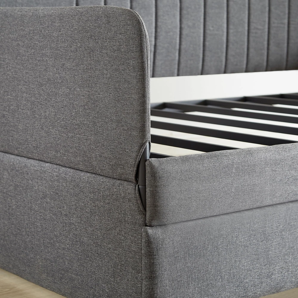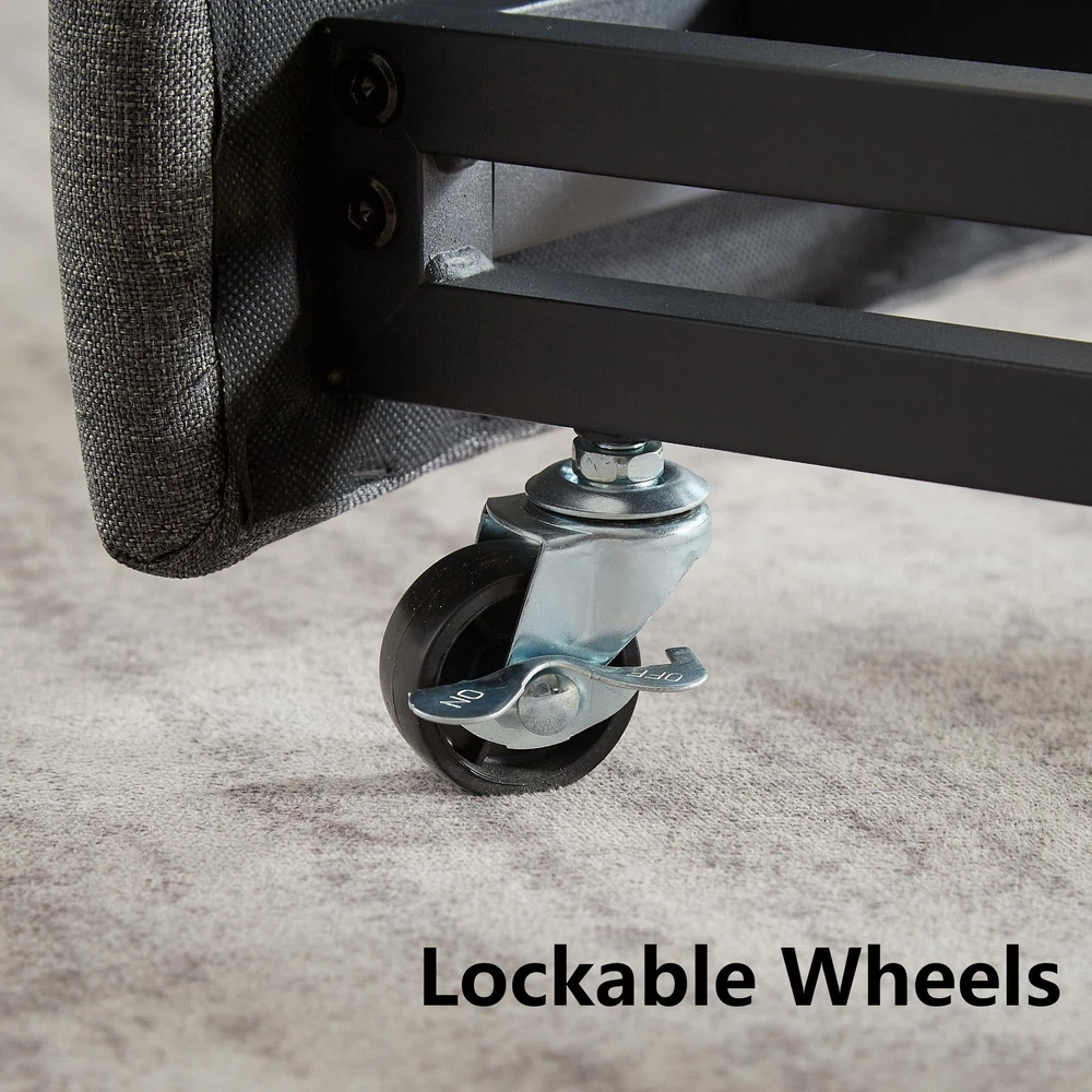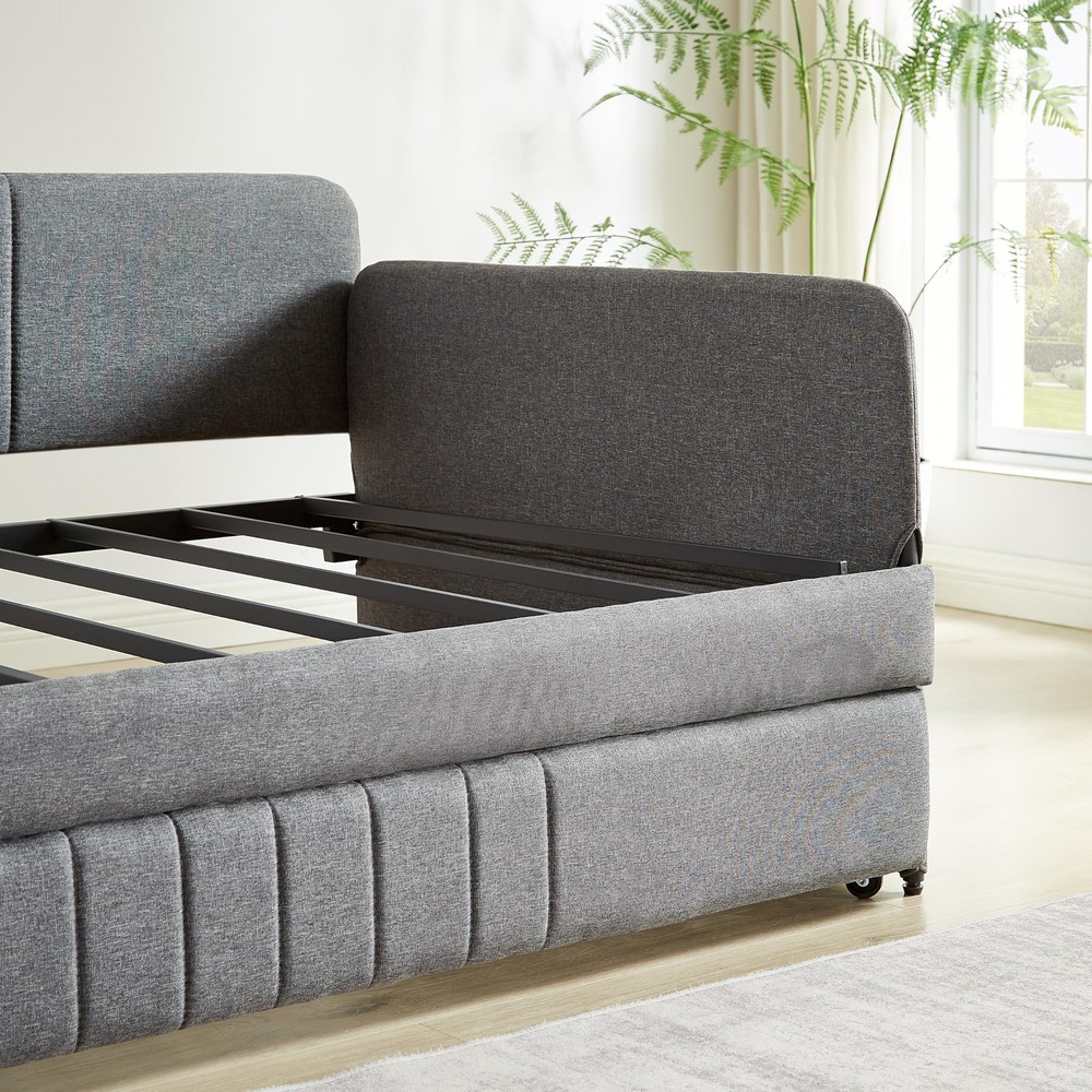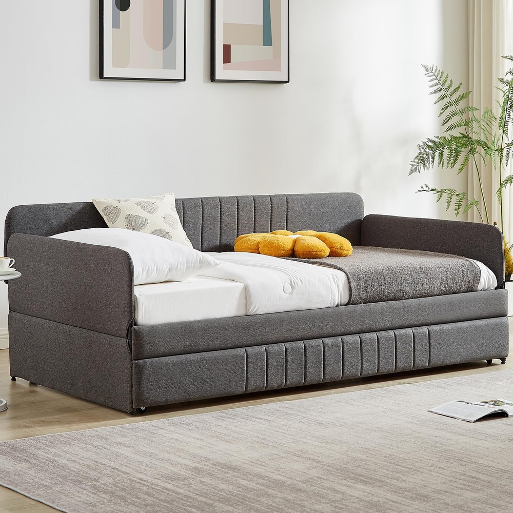 Twin Daybed with Trundle, Linen Upholstered Arm and Back Sleeper Sofa