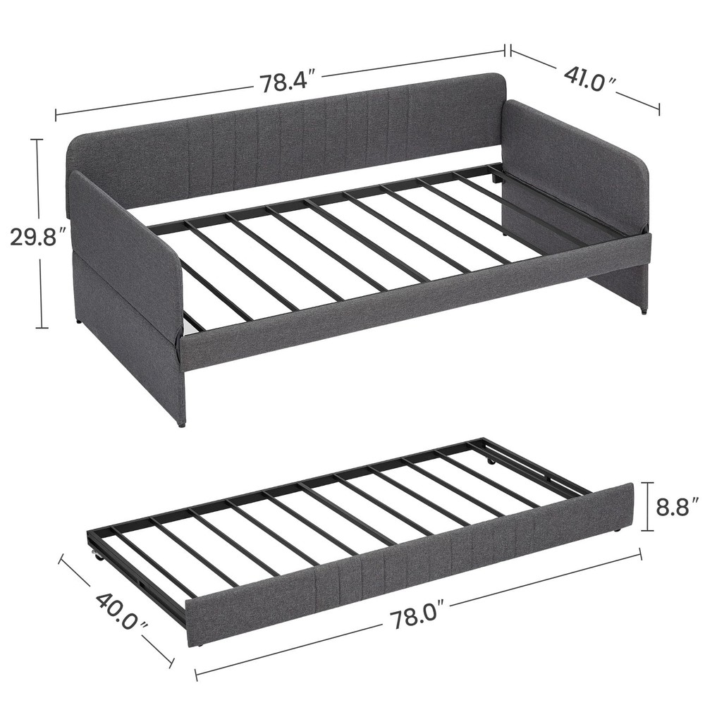 Linen đŸ„‡đŸ„‡ă€Twin Size Daybed Elegant Design】The mid-century design of this twin size daybed is elegant and modern, adding a special atmosphere to your room. The soft linen fabric creates coziness, while the single color of the design creates versatility. đŸ„‡đŸ„‡ă€Twin Size Daybed with Trundle Bed Twin】There is an additional trundle bed twin size underneath the twin daybed frame. This linen upholstered day bed can provide an extra place to rest for your children or guests who come to stay overnight. The twin size trundle bed slides smoothly on 4 casters and can be tucked away when not in use. Daybed weight capacity: 350LBS; Trundle bed: 250LBS. đŸ„‡đŸ„‡ă€Sturdy Day Beds Twin Size】The frame of this twin size day bed with trundle is crafted from a combination of teel to effortlessly hold up to 350 lbs for daybed. The twin size daybeds feature newly upgraded slats that prevent noise and extend the life of the twin size day bed. đŸ„‡đŸ„‡ă€Easy to Assemble daybed frame】This twin size daybed with trundle comes in one separate packages, Some simple assembly is required. All the necessary accessories and the detailed installation instructions are packaged well in the product parcel.